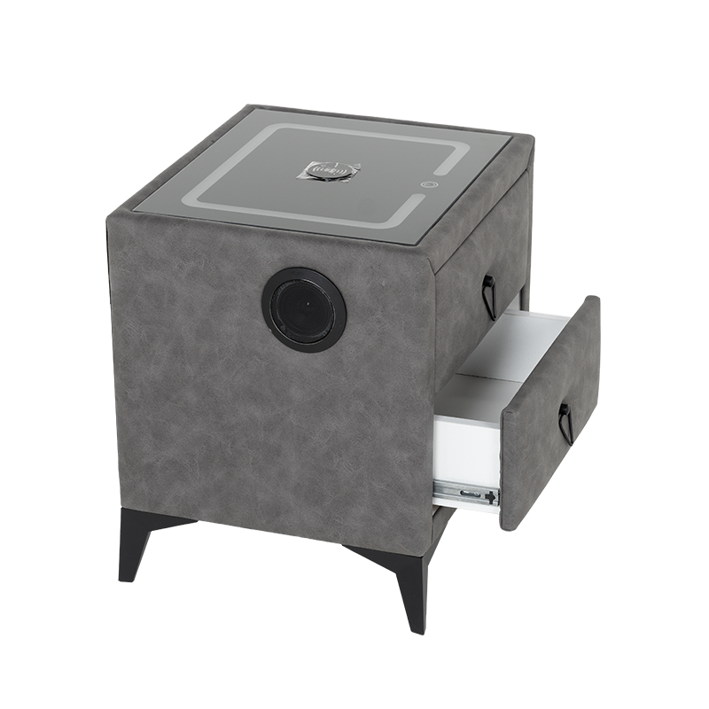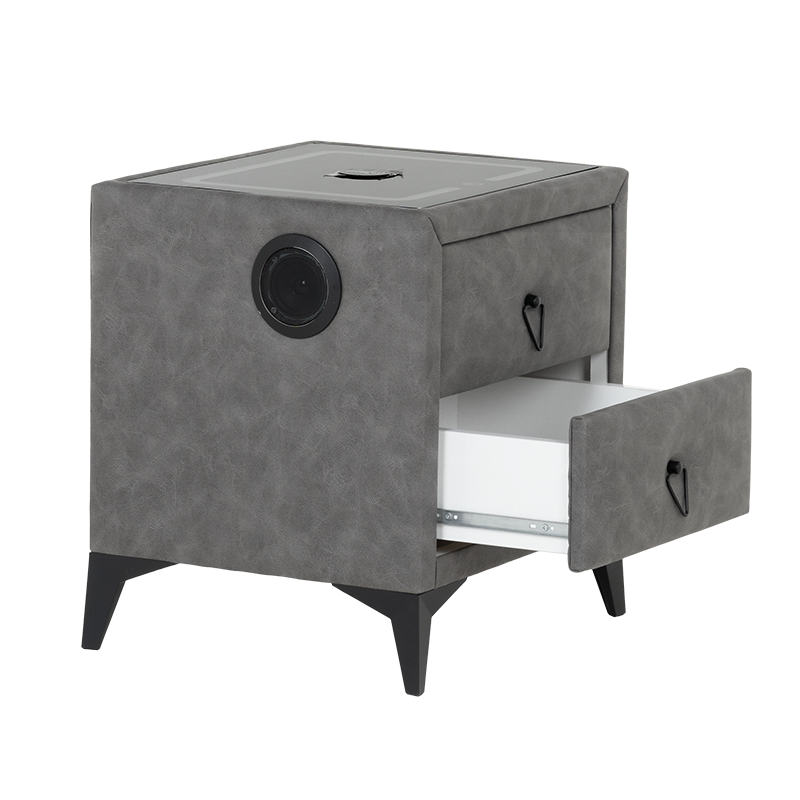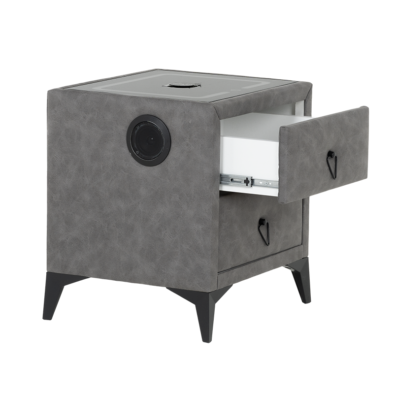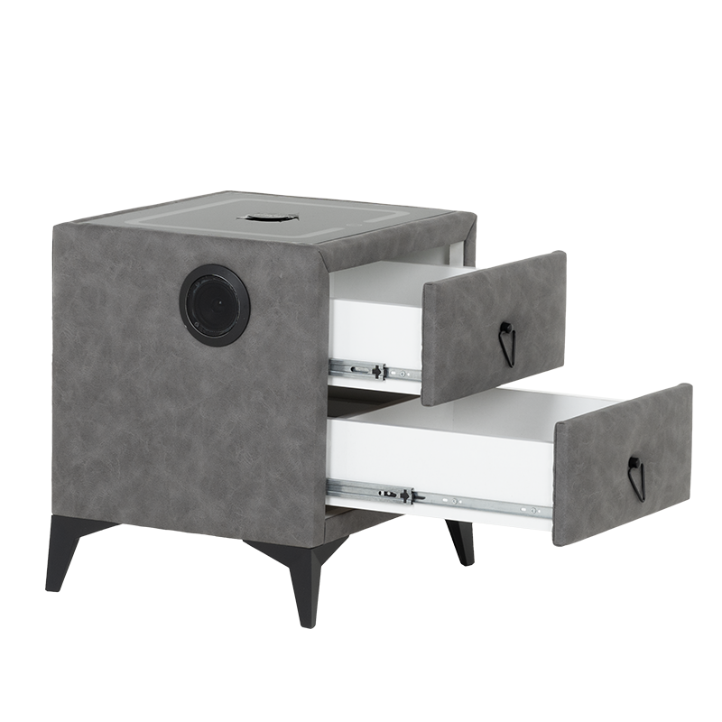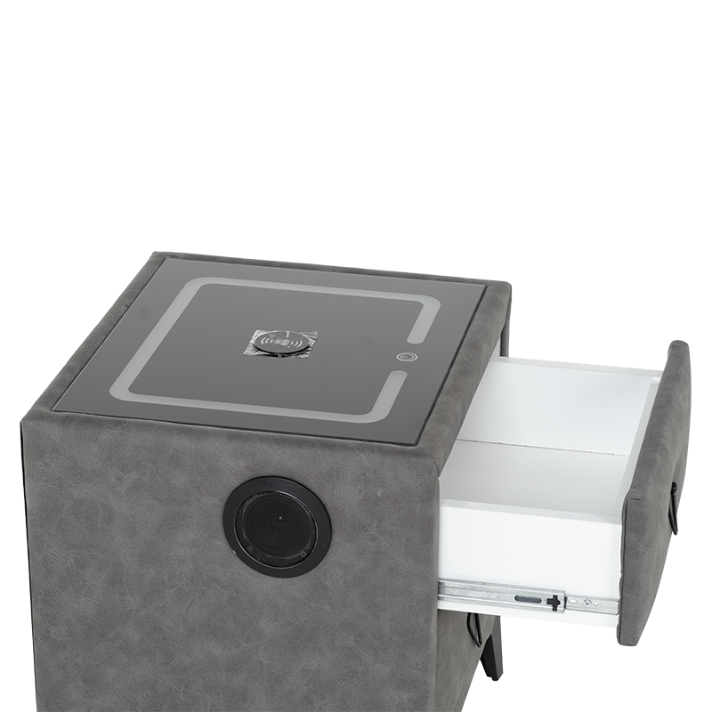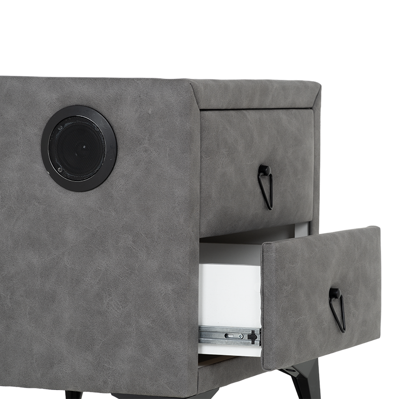 Нощното шкафче внася уникално удоволствие във вашата спалня с вграден Bluetooth високоговорител, безжично зареждане, USB 3.0 и Type-C порт, както и LED осветление. Благодарение на Bluetooth технологията, можете да свържете вашия таблет, телефон или компютър, позволявайки ви да се насладите на любимата си музика. Пълна информация за размерите и характеристиките на продукта ще намерите в таблицата в таб/поле „Техническа информация“.