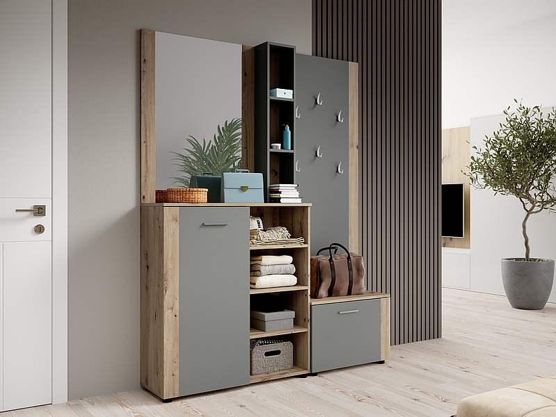 Комплект мебели за антре – занаятчийски дъб/антрацит