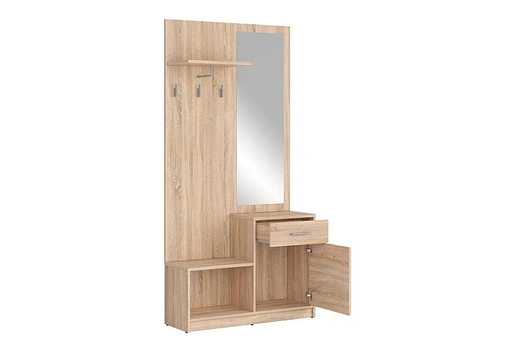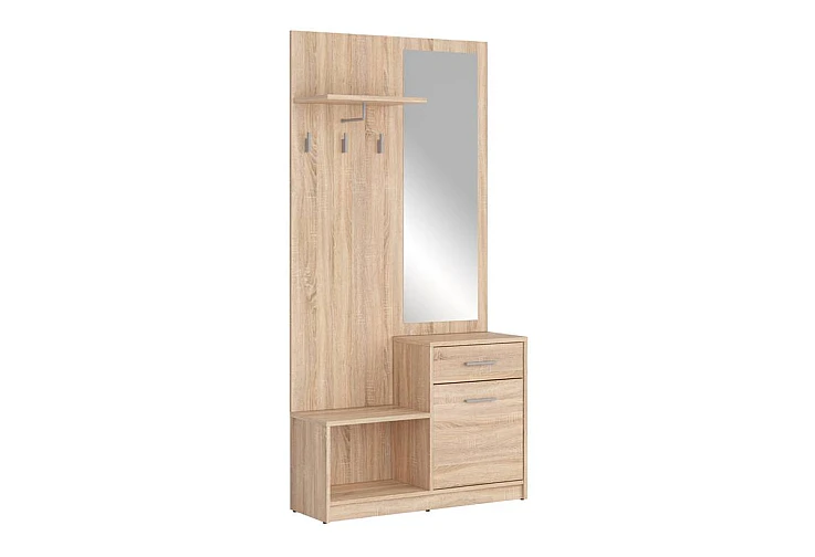 – Antre Nepo Plus представлява пълен комплект мебели, идеален за малки пространства и като основа за аранжиране на коридора. Включва отворено пространство, шкаф за обувки, чекмедже, закачалки, горен рафт и огледало – всичко необходимо за вас.