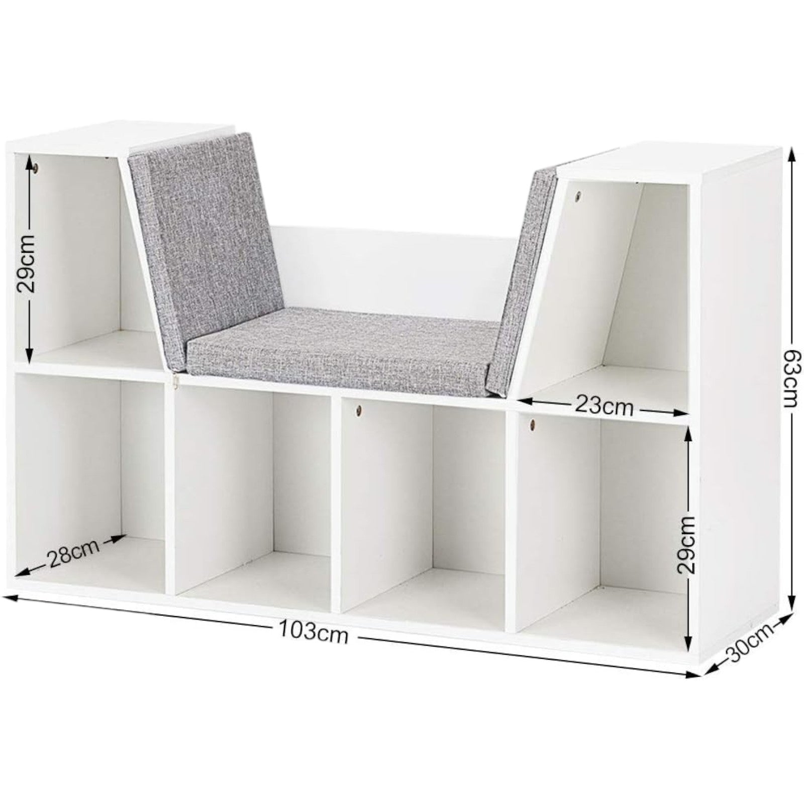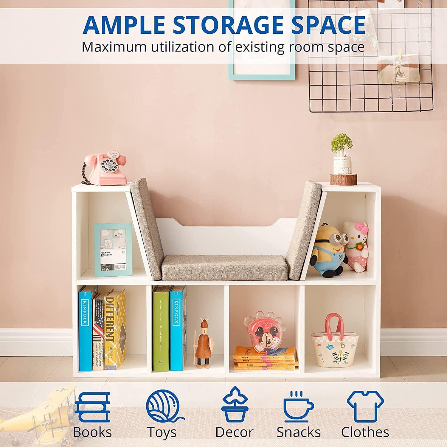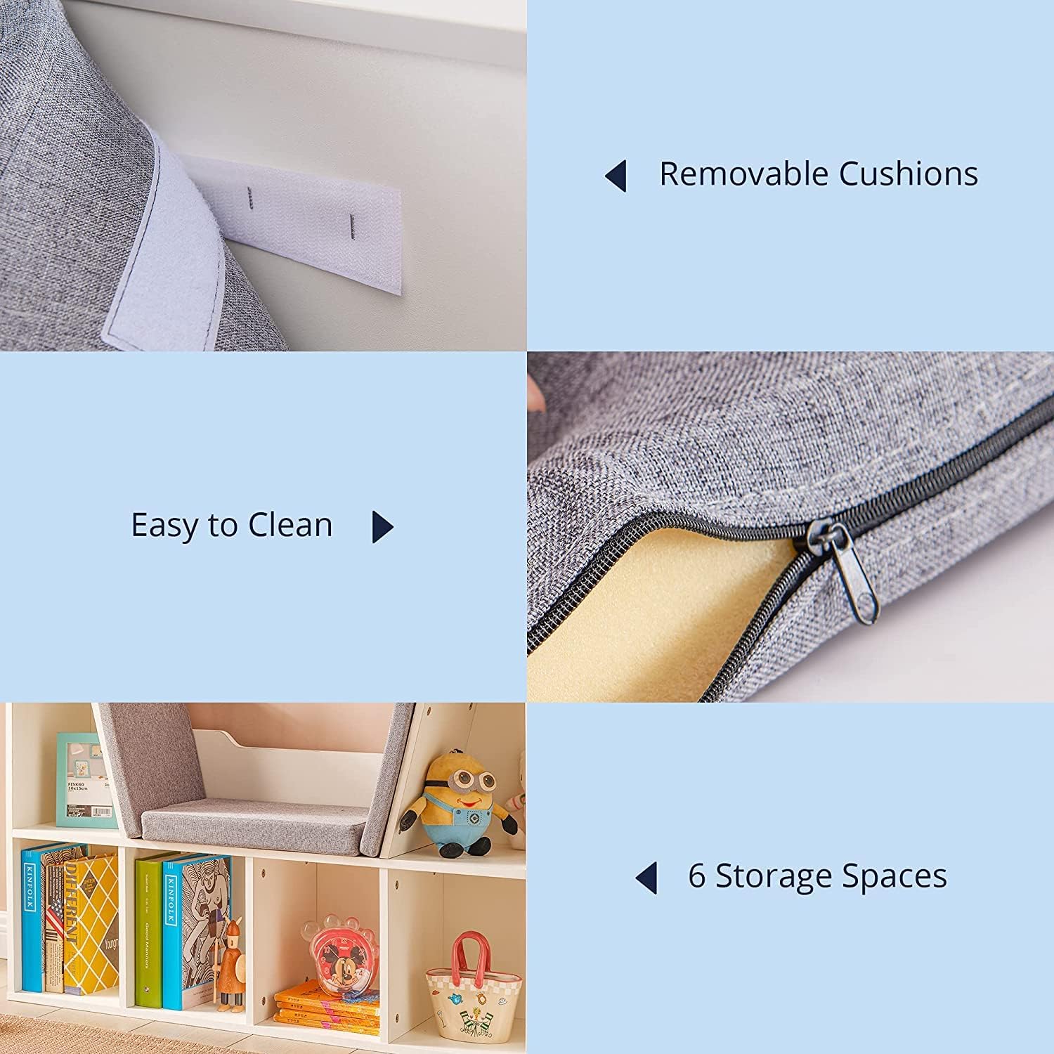 3 в 1 Детска Етажерка, Библиотека и Пейка, 6 Отделения за Съхранение на Играчки и Книжки, Подарък за 3+ години