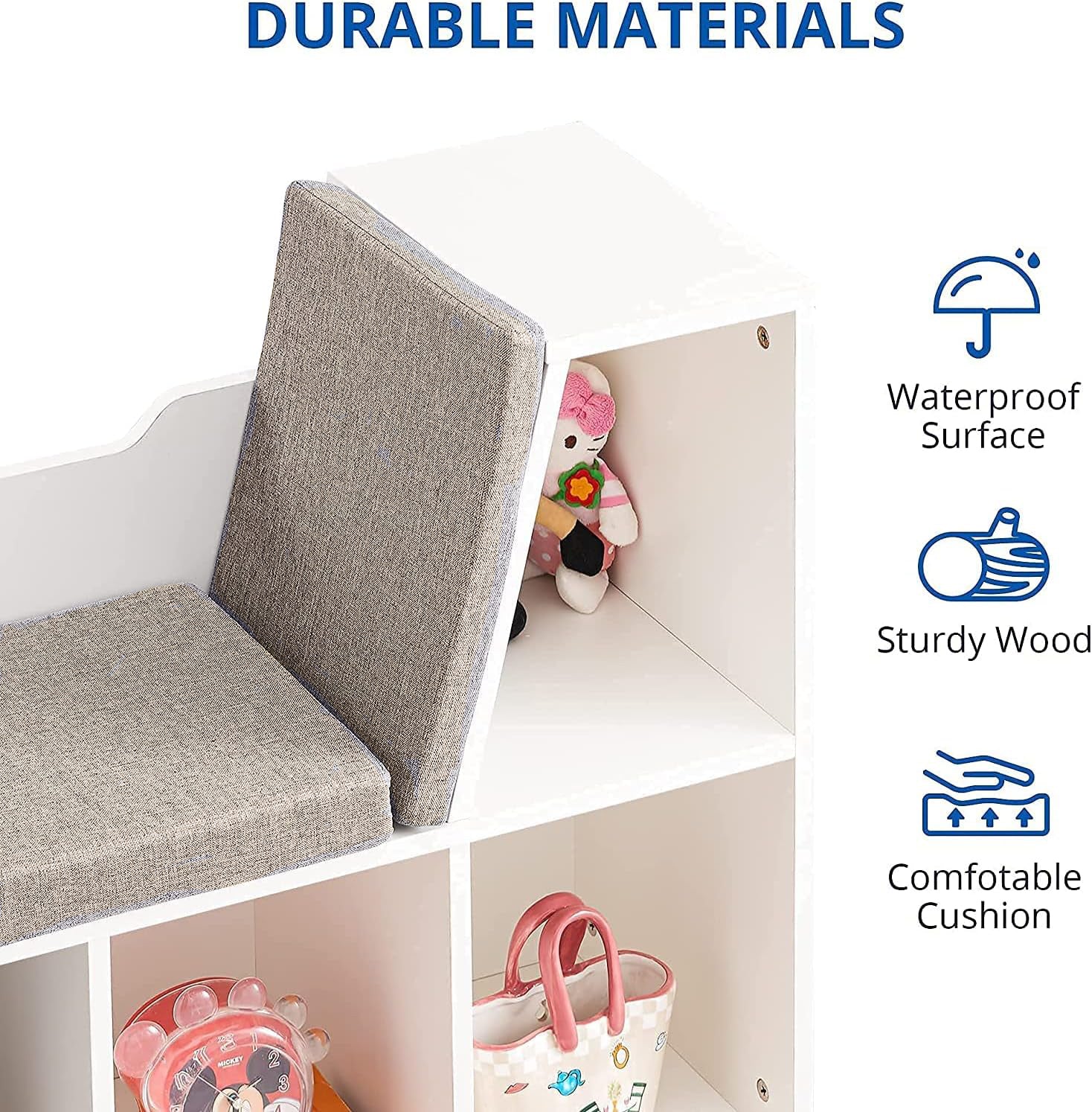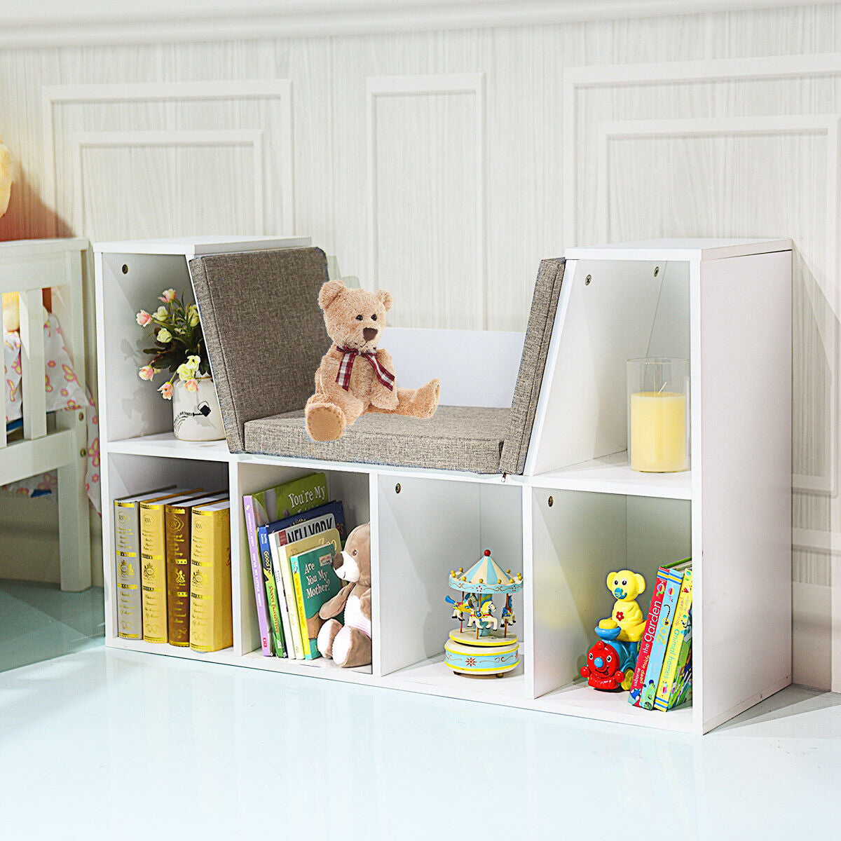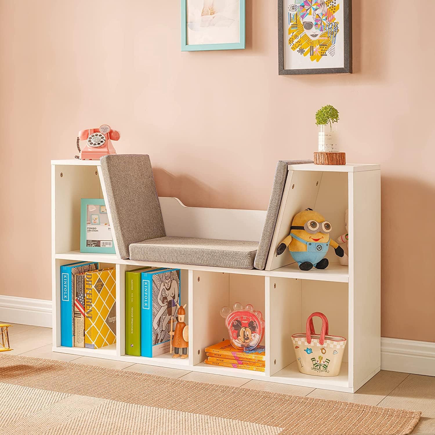 3 в 1 Детска Етажерка, Библиотека и Пейка, 6 Отделения за Съхранение на Играчки и Книжки, Подарък за 3+ години