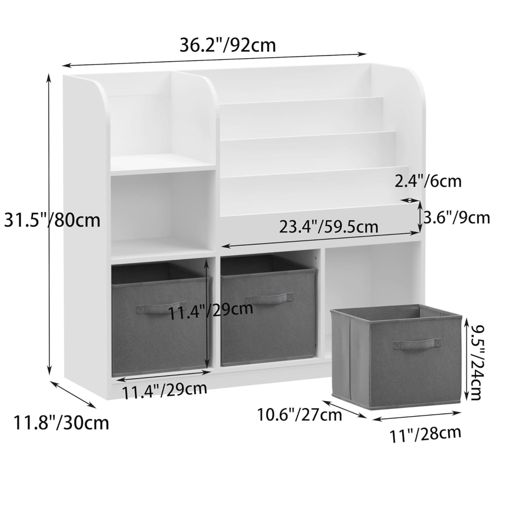 Изработен от здраво 12 мм ПДЧ с безвредно покритие и допълнен с 3 сиви кутии от нетъкан текстил, Детският органайзер е устойчив, безопасен и същевременно лек за местене. Благодарение на комбинираната си структура – вертикални и хоризонтални зони – този Детски органайзер осигурява максимално пространство за съхранение и лесен достъп до всички вещи.