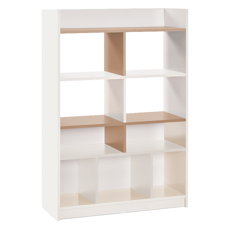 Детската етажерка за книги е красиво балансирано решение за съхранение което съчетава естетика и функционалност. Съставена от 9 отделения в различни размери тя предлага чудесно място за книги играчки кутии за съхранение и декоративни елементи. Свежите цветни акценти и изчистените форми създават уютна атмосфера в стаята на детето и приканват към ред и творчество. Изработена от здраво ПДЧ с дебелина 18 мм етажерката е стабилна практична и лесна за поддръжка. Пълна информация за размерите и характеристиките на модела ще намерите в таблицата в таб/поле ‘Техническа информация’
