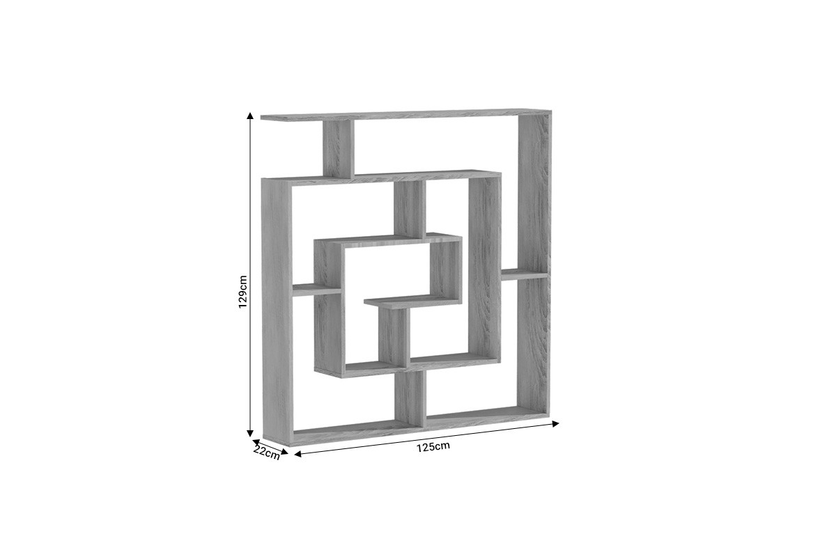Този елегантен и стилен библиотечен рафт е идеален избор за всеки модерен интериор. Изработен от висококачествени материали, той предлага издръжливост и устойчивост с минимални поддръжки, като същевременно запазва своята изящна естетика. Неговият уникален, геометричен дизайн създава интересни визуални ефекти, които придават съвременен акцент на всяка стая.