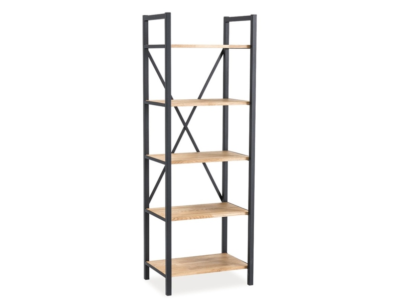 Етажерка – обикновен шкаф за книги, но с висока функционалност. Той ще намери приложението си например в модерна всекидневна, където домакинът ще иска да покаже своите книги или любими дрънкулки. Може да се използва и като шкаф за книги за книги в офис или стая за тийнейджър и дори като … рафт за саксийни растения, поставени в хола, залата, на мецанин, или където и да е, където има нужда от Украсете интериора. Самият багажник има проста, метална рамка в черно. Правоъгълните 5 рафта в фурнир от естествен дъбов цвят създават интересно, съгласувано цяло с рамка, която е подобно проста, скромна и много безвременна. Това е идеална мебел за интериора, в която доминират естествените цветове и простотата на формата. Той ще работи и в съвременните стаи, където прости и скромни мебели играят голяма роля, но ефективни и многобройни аксесоари за интериорна декорация.