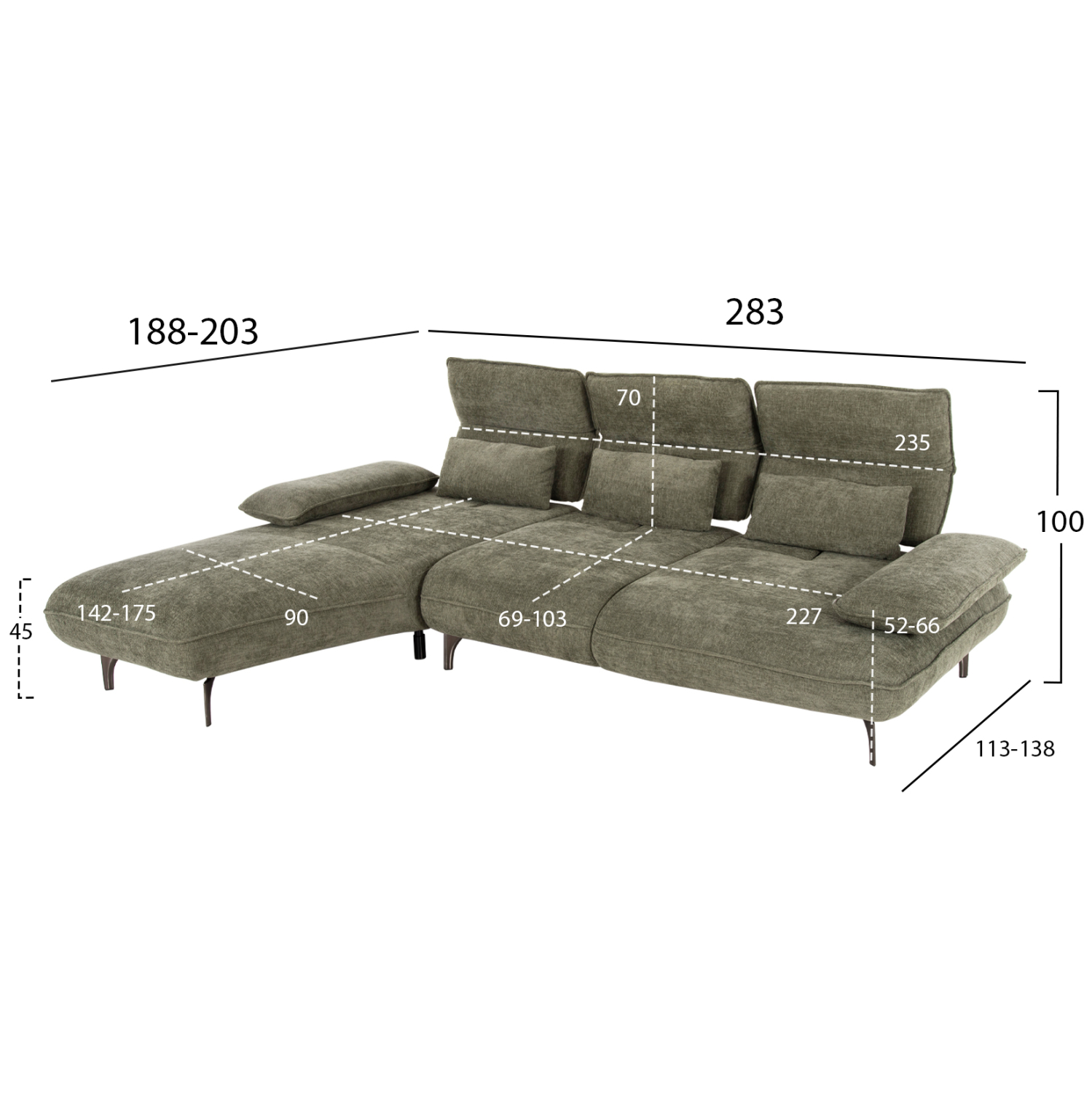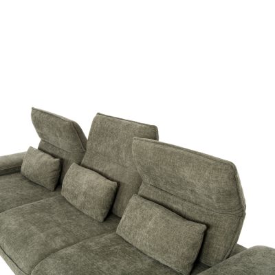 Подвижните облегалки и регулируемите подлакътници добавят допълнителна персонализация, позволявайки ви да създадете идеалната зона за почивка. Зелената тапицерия е луксозно и същевременно практично решение, което лесно се комбинира с различни интериорни стилове и цветови палитри.