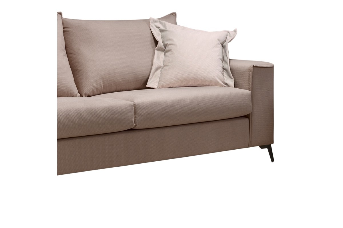 Основният материал, използван за изграждането на тази мебел, е висококачествена текстилна дамаска, известна със своята издръжливост и лесна поддръжка. Цветът е красив и неутрален, топъл нюанс на бежово, който лесно се съчетава с различни интериорни стилове и цветови схеми. Тази гама позволява лесни комбинации с различни аксесоари и декори в помещението, като същевременно внася усещане за уют и простор.