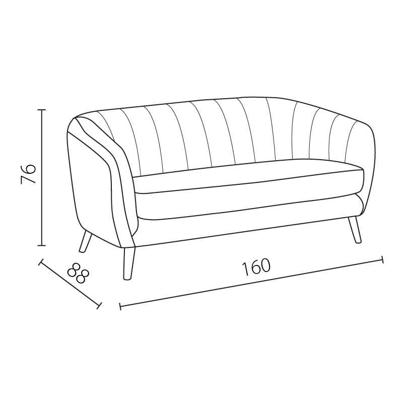 Двуместното канапе грабва вниманието със своя очарователен дизайн, който комбинира заоблени форми и кадифено нежна дамаска. Моделът е с модерна визия и здрава конструкция от дърво и метал. За пълна информация относно размерите и характеристиките на това канапе, моля, вижте таблицата в таб/поле „Техническа информация“.