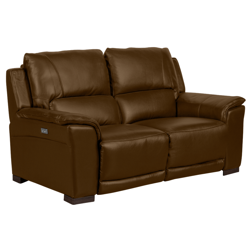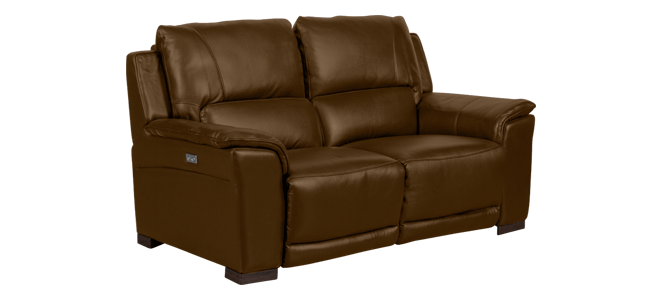 Кожен диван – двойка с електрически релакс механизъм – кафяв