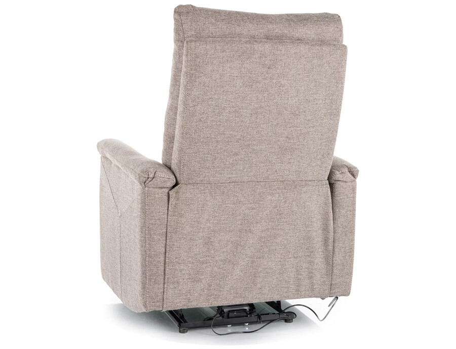 Фотьойл с електрическо разгъване – бежов 34 Размери: ширина: 76 см – дълбочина: 94 – 160 см – височина: 96 см – дълбочина на седалката: 57 см – височина на седалката: 48 см – височина на краката: 5 см Материал: – плат 34 – метал Цвят: бежов / черен Допълнителна информация: – електрическо разгъващо се фотьойл – управлението на накланянето с бутони от дясната страна на фотьойла – порт