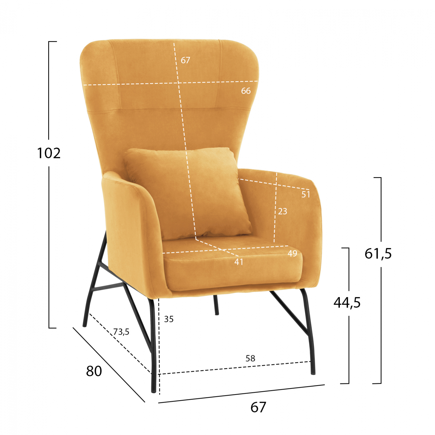 Представяме ви елегантен и стилен кресло, което добавя уют и комфорт на всяко пространство. Със своята свежа жълта окраска, това кресло привлича вниманието и придава жизнерадостен акцент на вашия интериор. Изработено от висококачествени текстилни материали, което осигурява дълготрайна употреба и лесна поддръжка.