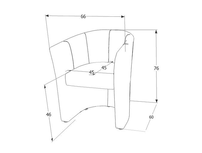 Размери: – ширина: 67 см, – дълбочина: 47 см, – височина: 76 см, – седална височина: 46 см,