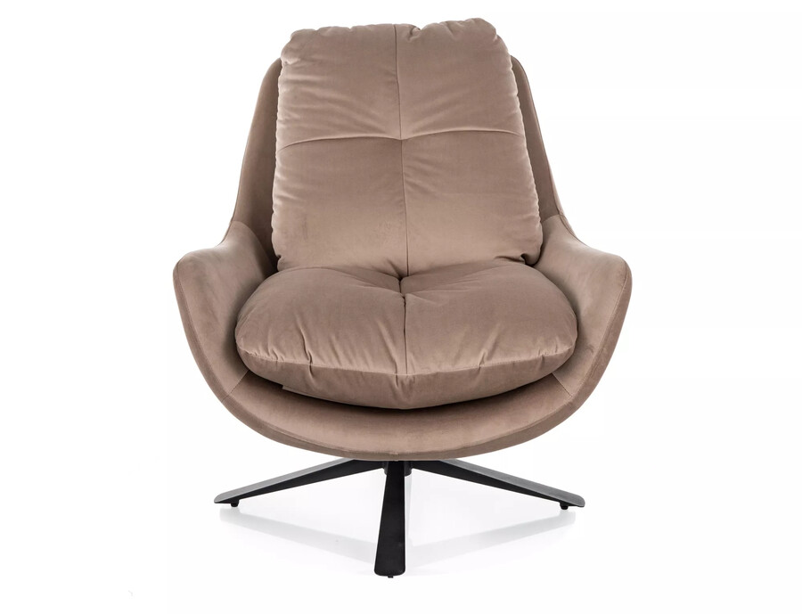 Въртящ се кадифен фотьойл – тъмнобежов 40 Размери: ширина: 80 см – дълбочина: 91 см – височина: 90 см – дълбочина на седалката: 50 см – височина на седалката: 47 см – височина на краката: 21 см Материал: – кадифена материя 40 – метал е издръжлива кадифена материя с благороден, лек блясък. Материята има много добра устойчивост на износване и образуване на пликове. Материалът е лесен за почистване и е сертифициран за търговска употреба и . Цвят: тъмнобежов / черен Седалката се върти на 360°.