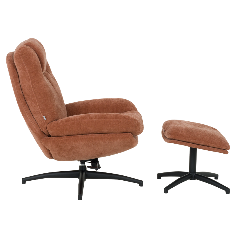 Снимката представя елегантно кресло с табуретка, създадено за безупречен комфорт и стил във всеки интериор. Изработено от висококачествени материали, този комплект е съчетание на изящен дизайн и функционалност. Меките линии и модерната силуета подчертават чувството за изисканост и съвършенство във вашия дом или офис.