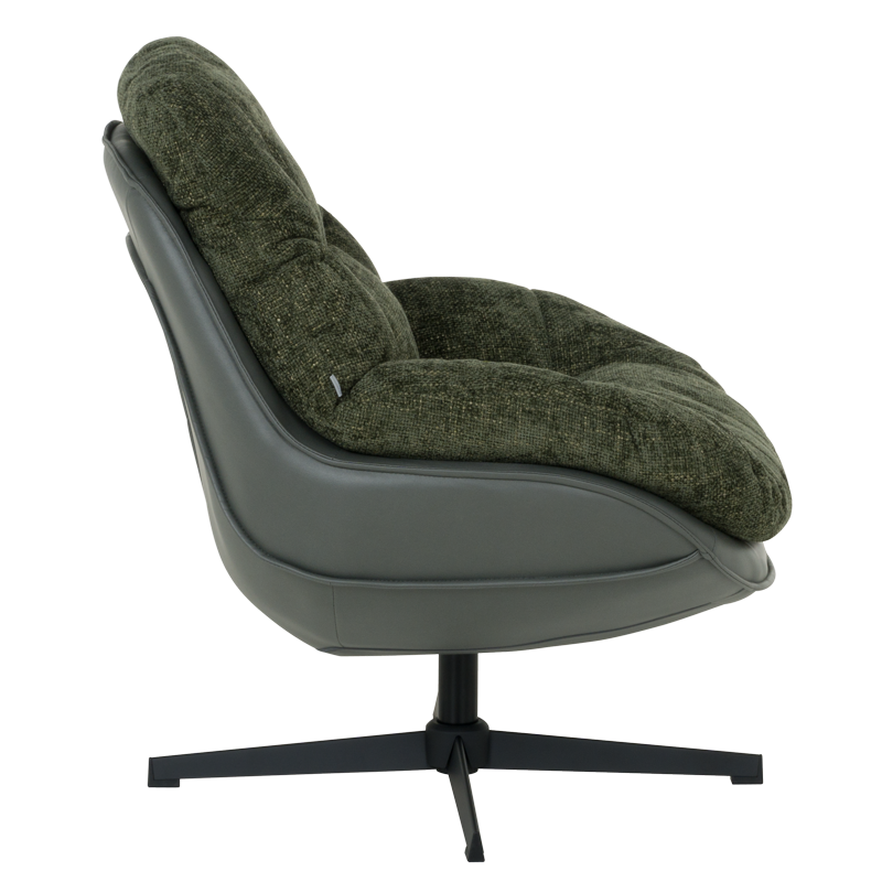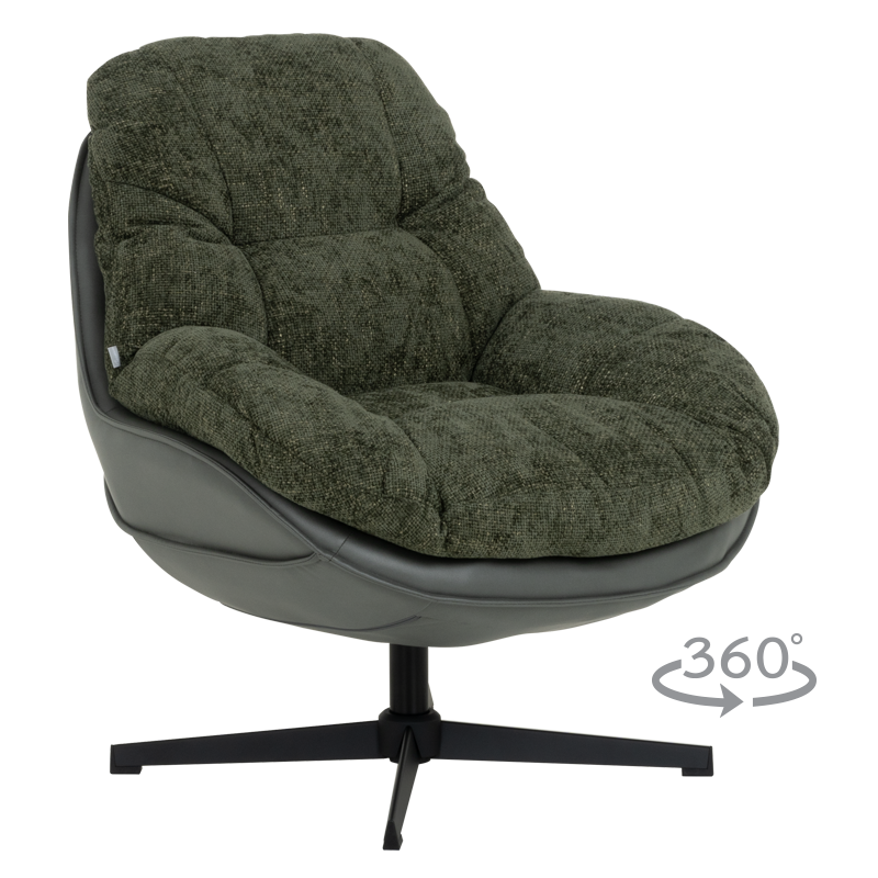 Подсилената конструкция осигурява стабилност и дълготрайност, благодарение на здравите си материали, запазвайки външния вид и удобството си за дълги години. Черната основа е с модерен завършек, придаващ изтънченост и съвременен вид. Функцията за въртене на 360 градуса позволява свободно движение и гъвкавост във всекидневните дейности.