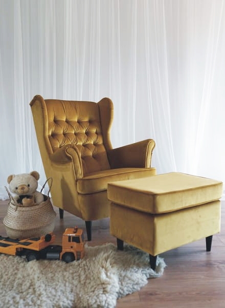 Кадифена табуретка за крака – жълто/къри Buvel 68