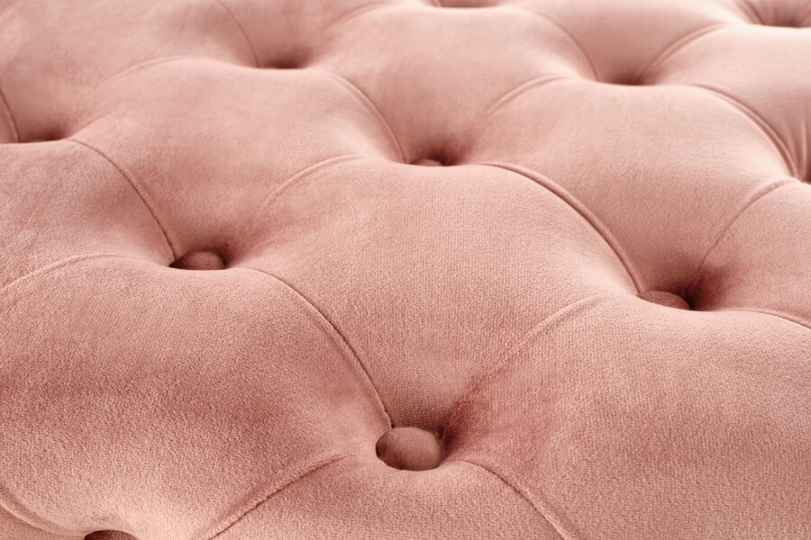 Пейка – Изработена в розово е идеалното допълнение към модерна спалня, елегантен коридор или зала. Особено тези, които ценят оригиналните и безвременните мебели, ще се харесат на онези, които ценят оригинални и вечни. Пейката беше изработена от розова кадифена тъкан и хромирана стомана. Стилният квилинг се използва на цялата повърхност на седалката – както е предназначено за седене, така и от широките му страни. Подобна процедура придаде на пейката богат, масивен вид. Благодарение на дълбоко пришитите копчета, мебелите придобиват изключителен дизайн. Мебелите бяха поддържани от четири хромирани крака, завършени с черни защитни наслагвания. Прости крака бяха боядисани до златисто кафяво. Моделът има два други цветови варианта: тъмно зелено и сиво. Възможността за избор на цвета на седалката ви позволява да съответствате на мебелите с интериора на различни нюанси.