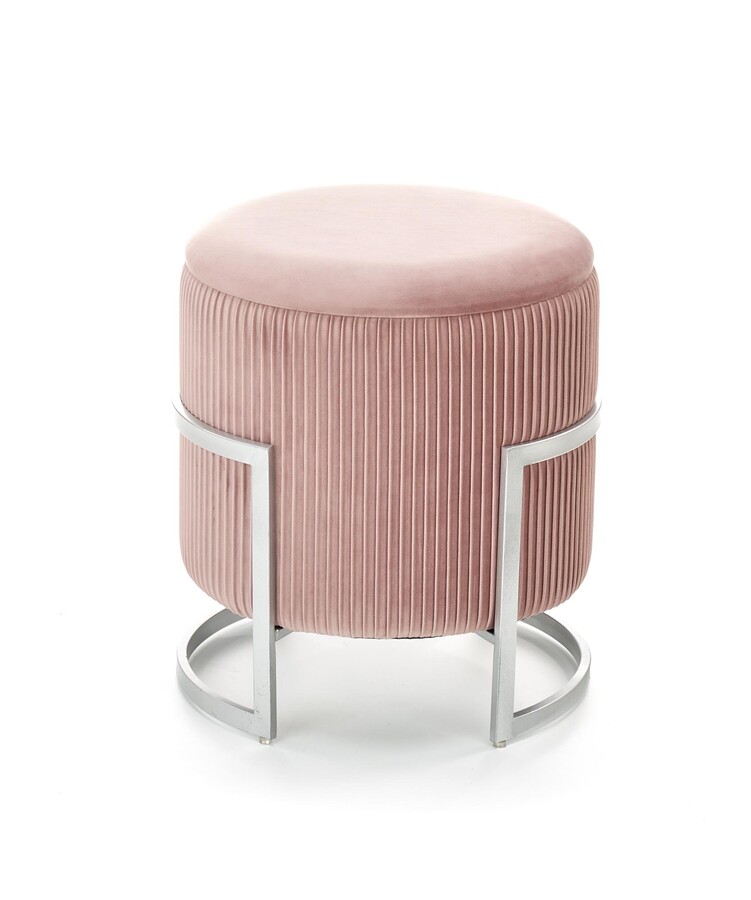 Табуретката е най-доброто предложение за дизайнерски интериори, открояващи се с невероятен характер и благодат. Модала не само функционален елемент на вътрешното обзавеждане, но и нейната декорация и дори нежно може да определи по-нататъшната му посока на подреждане. Мебелите могат да се използват за сядане, но също така могат да се превърнат в удобна подложка за крака, която ще се побере добре с модерно кресло. Има цилиндрична форма, също така е украсен. В допълнение, табуретката е лека и опира до метална рамка в сребро, като добавя уникалност в цялостната визия на тази структура. Въпреки, че е много дизайнерски елемент на обзавеждането, което е и интересна декорация, също трябва да се отбележи, че тя е много практична мебел, тъй като производителят се е погрижил да проектира доста просторно отделение за съхранение на различни неща. Това е чудесно предложение за интериора в модерен стил и блясък. Табуретката е покрита с кадифена тъкан в светло розово.