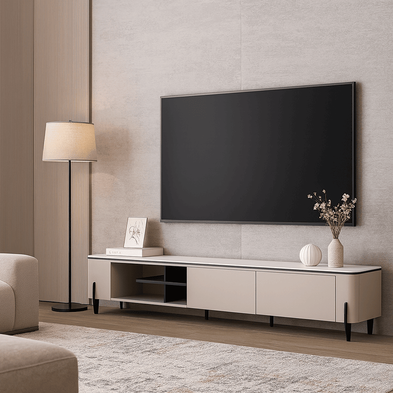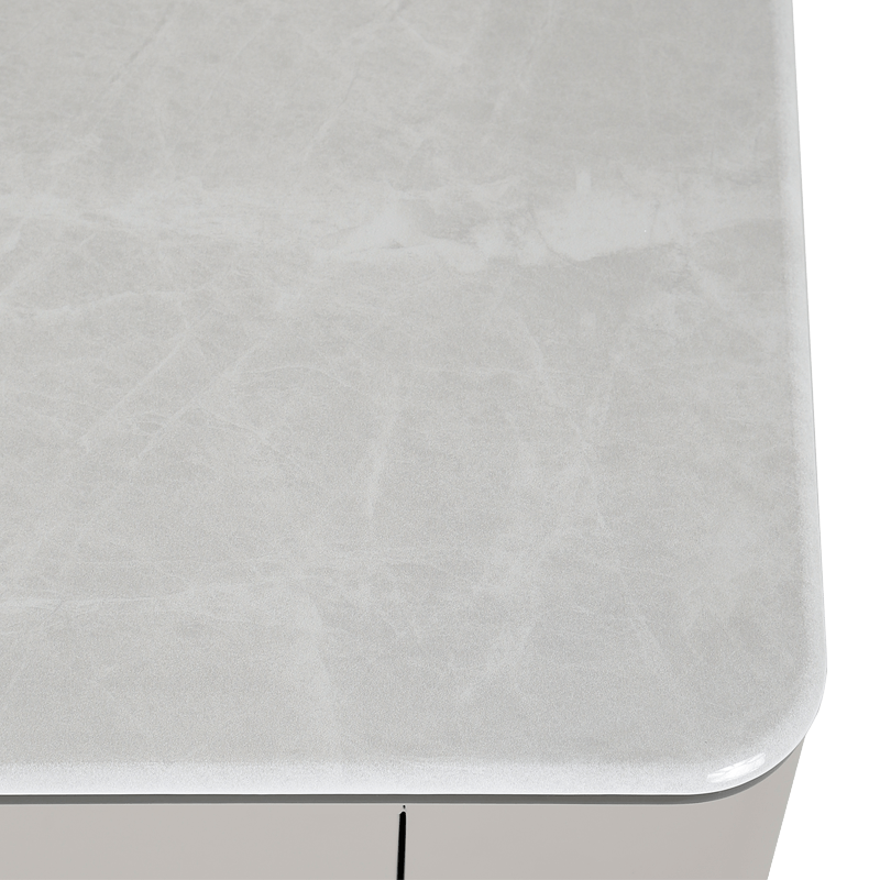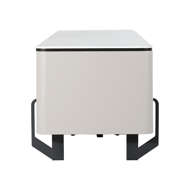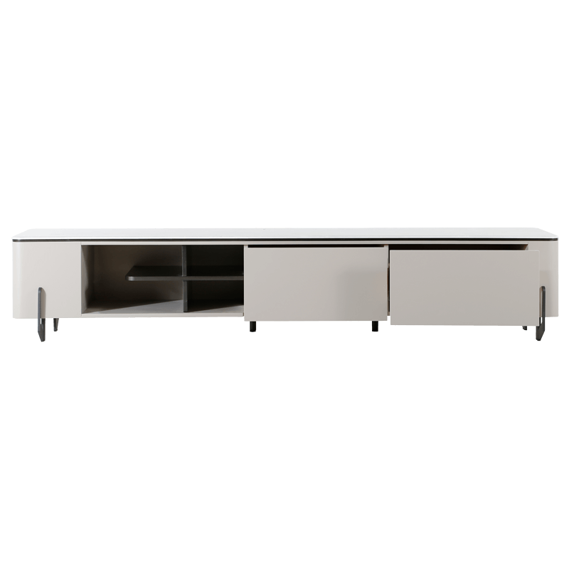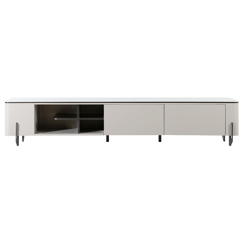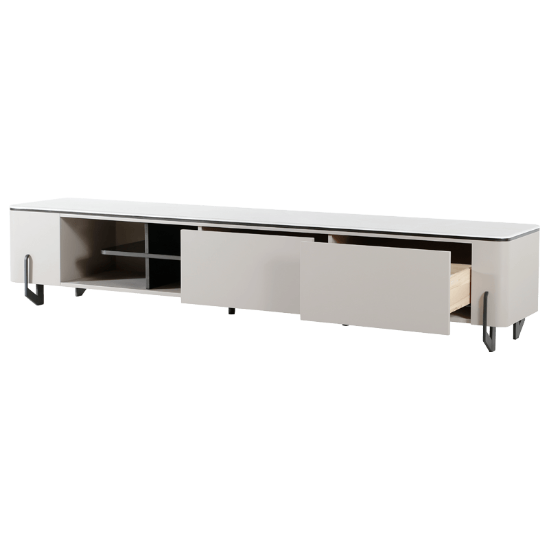 Минималистичен дизайн изчистени линии и луксозно излъчване – ТВ шкаф е създаден за да придаде елегантен завършек на всяка модерна всекидневна. Плотът от керамика с дебелина 10 мм впечатлява със своята издръжливост и блясък а стилната основа от МДФ подчертава съвременния характер на модела. Практичността не е пренебрегната – моделът предлага два чекмеджета с корпсус от борова дървесина и отворено пространство с интересна конфигурация от рафтове идеални за съхранение на техника и аксесоари. Пълна информация за размерите и характеристиките на модела ще намерите в таблицата в таб/поле „Техническа информация“