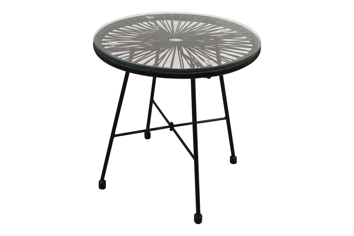 Масата, включена в комплекта, е с изчистен и функционален дизайн. Тя също е изработена от здрав метал, което гарантира стабилност и дълготрайност. Плотът на масата е от закалено стъкло, което осигурява устойчивост на външни въздействия и лесна поддръжка.