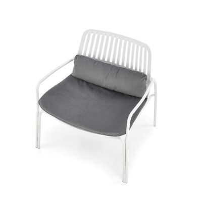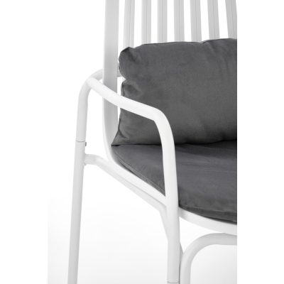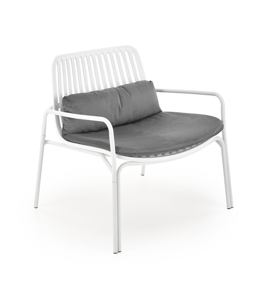 Градинският фотьойл е изключително интересно и модерно предложение за всички любители на добрия стил и неочевидните комбинации. Описаният модел значително се отличава с уникалния си дизайн, въпреки че с успех може да се причисли към минималистичните мебели, перфектно задоволявайки нуждите на Въпреки тази форма, дизайнерите от марката са усъвършенствали този проект, като ни дават вечна композиция, която може да остане валидна в продължение на много години.в бяло.За по-голям комфорт производителят е поставил сива възглавница, изработена от еднообразна материя върху него.Цялото нещо се поддържа от четири, леко разширени крака, които придават лекота на конструкцията, но в същото време я правят да изглежда стабилна.Креслото може да се превърне не само в полезен фотьойл елемент на градината, но и в нейния интересна украса.