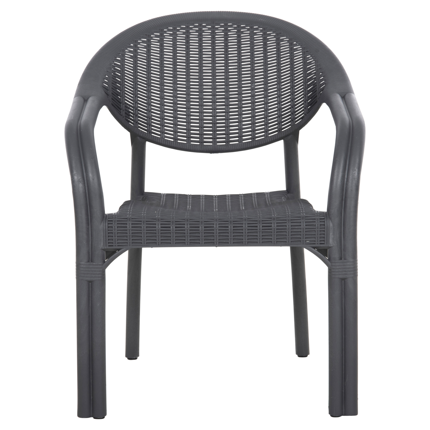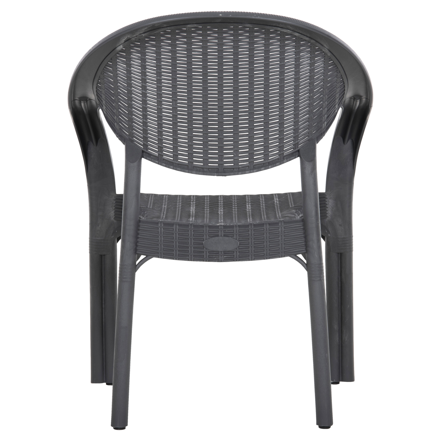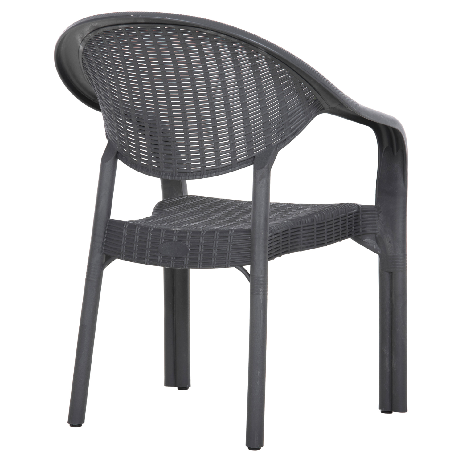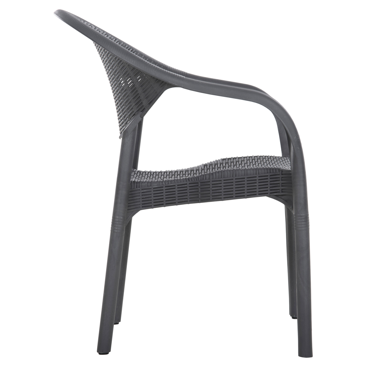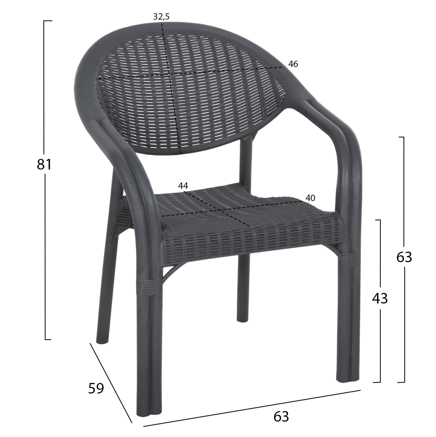 Столът е в елегантен тъмносив цвят, който лесно се вписва във всяка обстановка, придавайки нотка на съвременност и изисканост. Дизайнът му включва извит гръб и подлакътници, които осигуряват комфорт при сядане и допринасят за изящния му външен вид. Седалката и облегалката са изработени с текстуриран ефект, който придава допълнителен чар и оригиналност на продукта.