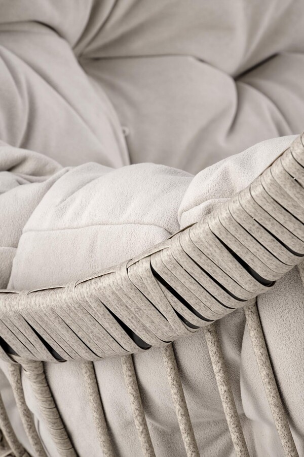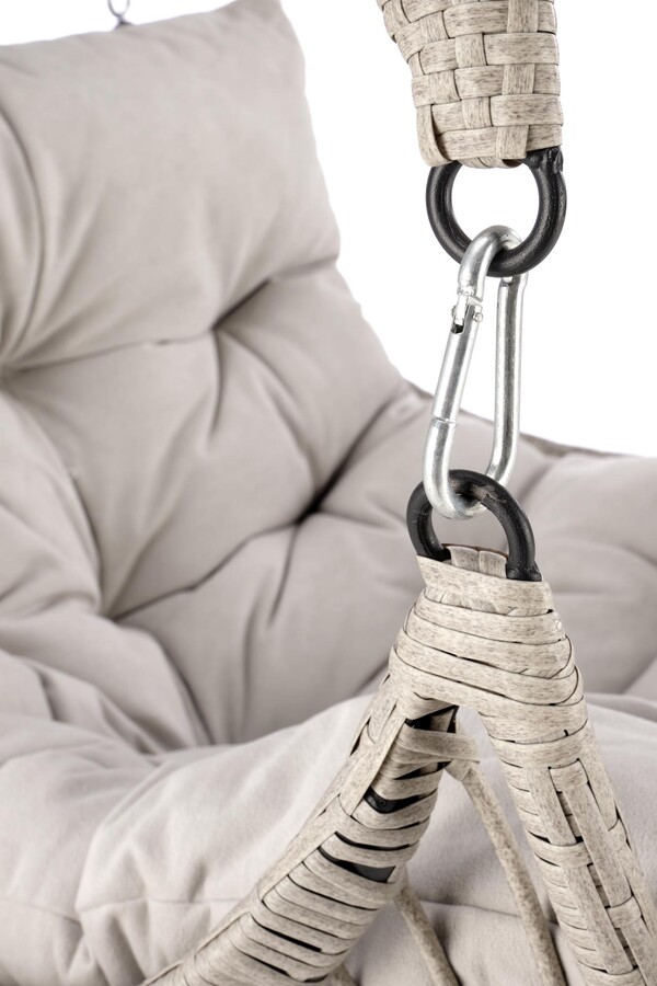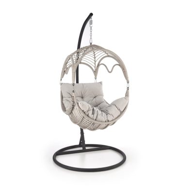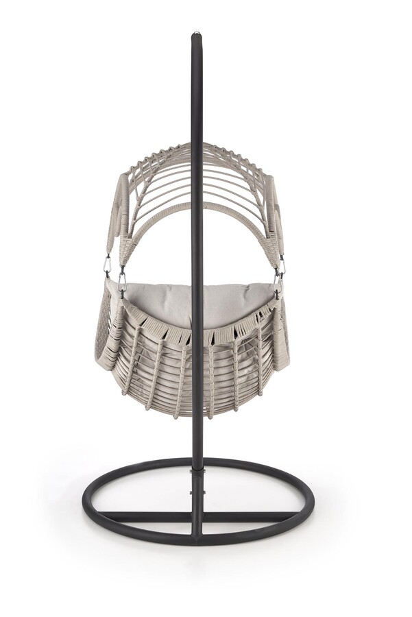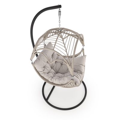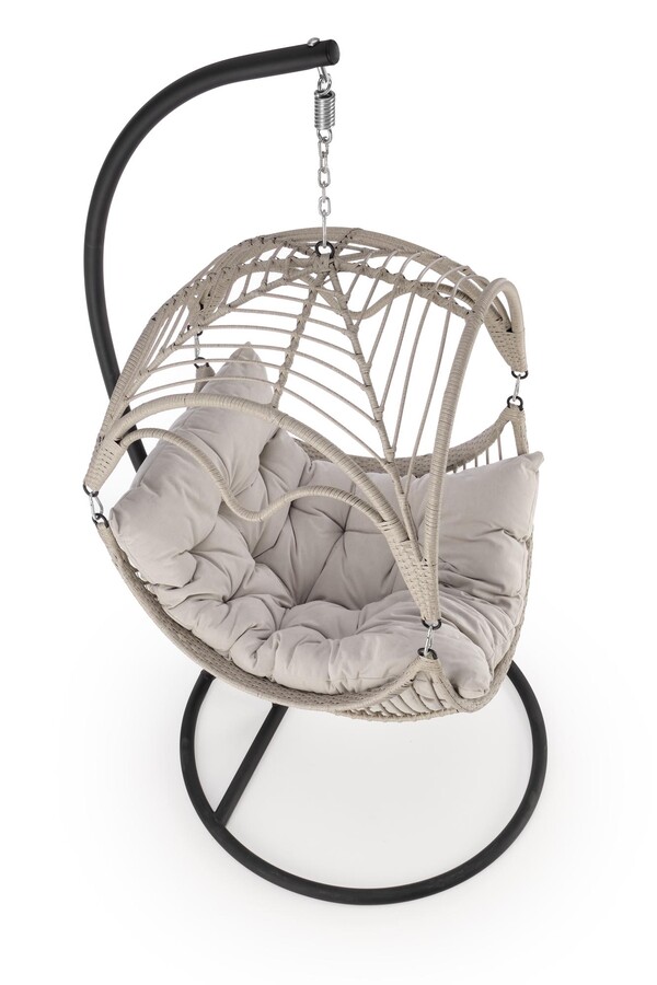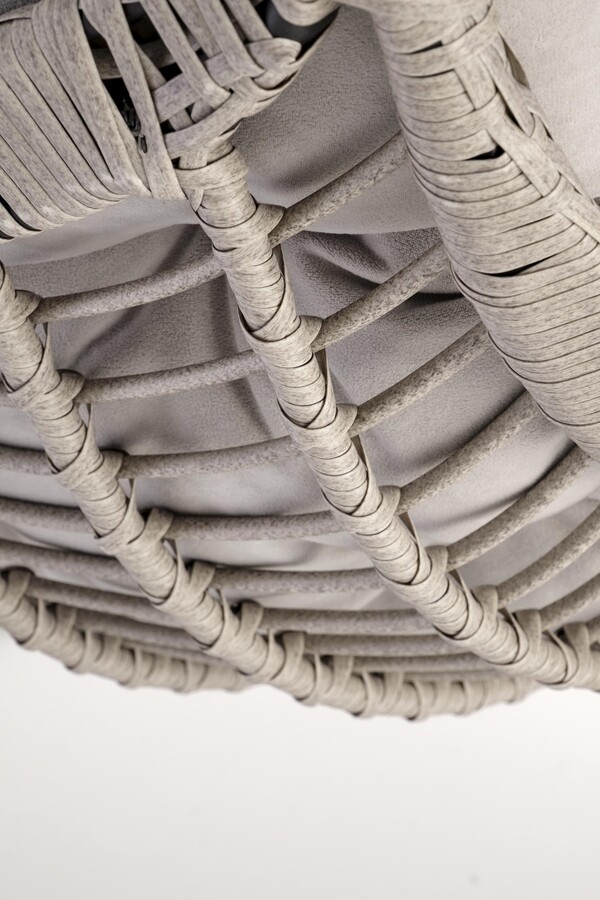 Висящото кресло е предложение, което ще се премести на открито на напълно ново, по -високо ниво. Това е идеално предложение за любителите на релаксацията на терасата, в градината и на балкона, който в същото време перфектно се вписва в текущите тенденции. Перфектен отвън, но също така – благодарение на дизайнерския си вид – може да бъде перфектен като стол, висящ в просторна всекидневна. Седалката на кофата с дизайнерски покрив бяха направени от синтетичен ратан, който се характеризира с висока издръжливост и устойчивост на метеорологичните условия. Мебелите са оборудвани с голяма, мека възглавница в лека трева, което увеличава комфорта на употребата. Цялото се съхранява от профилирана рамка, изработена от стомана, боядисана с прах метод в черно.