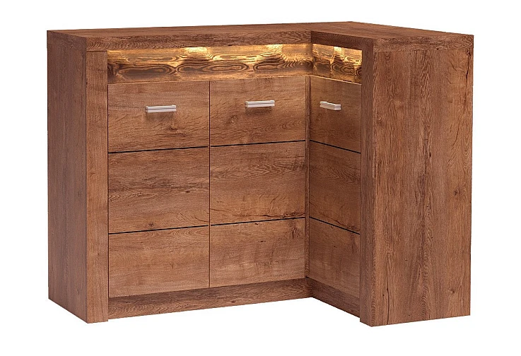 Шкаф INDIANAPOLIS I-15 е уникален модул от колекцията мебели на полската марка Jarstol. Съчетава дизайнерски елементи като дървесна текстура, ЛЕД осветление и изчистени линии, подходящи за модерни, ърбан, бохо или индустриални интериори.