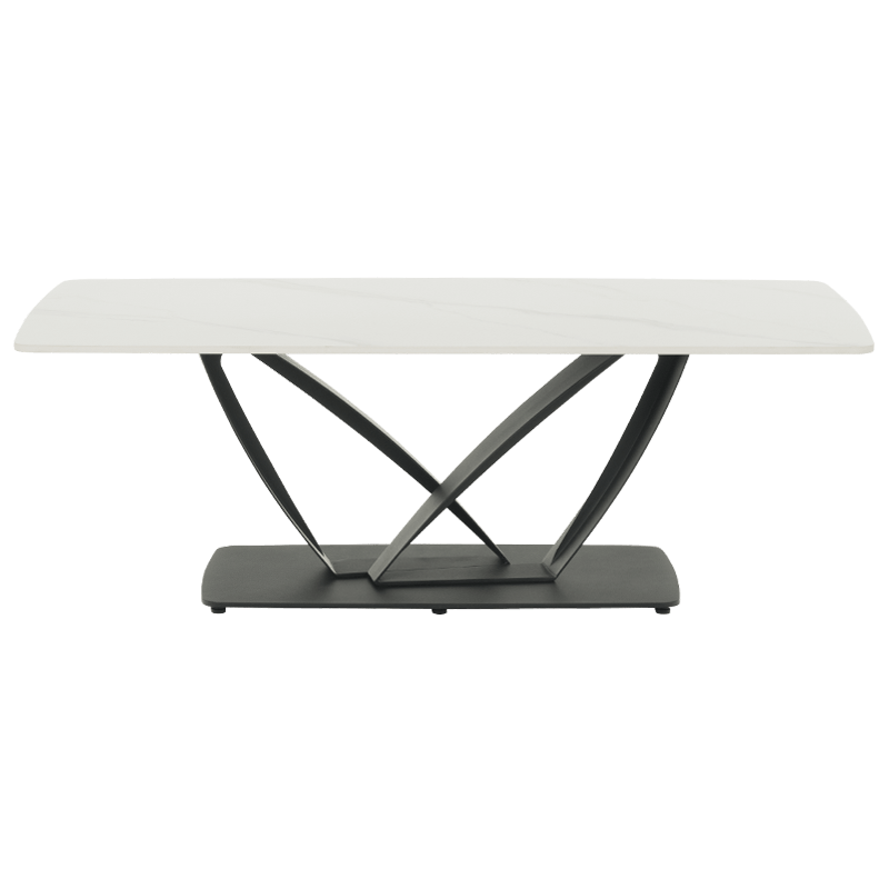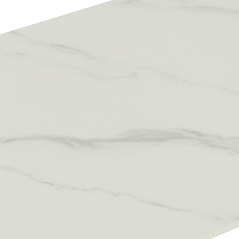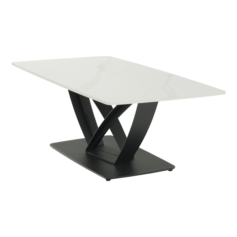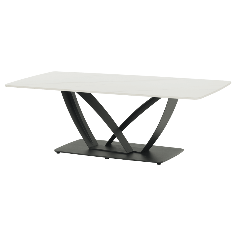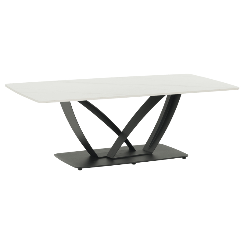 Холната маса ще ви очарова с елегантния си дизайн и изключителна изработка. Плотът, изработен от висококачествена керамика с дебелина 12 мм, блести с изчистена естетика и безупречен завършек. С размери 120 см дължина, 60 см ширина и 40 см височина, тя е стилно допълнение към всяка всекидневна. Основата от праховобоядисан метал с черен матов финиш придава модерно излъчване. Преплетените метални линии създават усещане за движение и хармония, превръщайки масата в истинско произведение на изкуството, което вдъхновява и впечатлява. За подробна информация относно размерите и характеристиките, моля, разгледайте таблицата в секцията „Техническа информация“.
