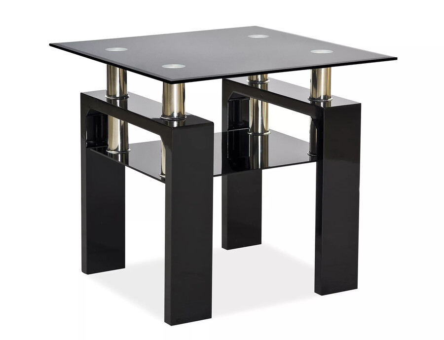 Холна маса – Това е изключително модернистична пейка, характеризираща се с безвремие, елегантност и простота. За да го създаде, беше използвано черно закалено стъкло с рамка, изработена от MDF. Пейката се отличава преди всичко с много иновативен дизайн, който със сигурност ще бъде напълно открит в много модерен, просторен интериор. Ще изглежда перфектно в хол в модерния стил на изкуството. Това е пейка на правоъгълно огънати черни, широки рамки, в които са монтирани стълбове в сребърен цвят. Дъното на четири стълба се поддържа на повърхността на черно квадратно стъкло. Плотният плот, поддържан в стълбове, също е направен от закалено черно стъкло. Благодарение на перфектната хармония между сребро, черно и стъкло, тази пейка е изключително универсална. Той работи в ултрамодерен, суров интериор в стила на таванско помещение, както и в изключително елегантни салони, където стъклото и черното играят основната роля. И долният, и горният връх са изключително функционални и ви позволяват да се чувствате наистина комфортно в хола.