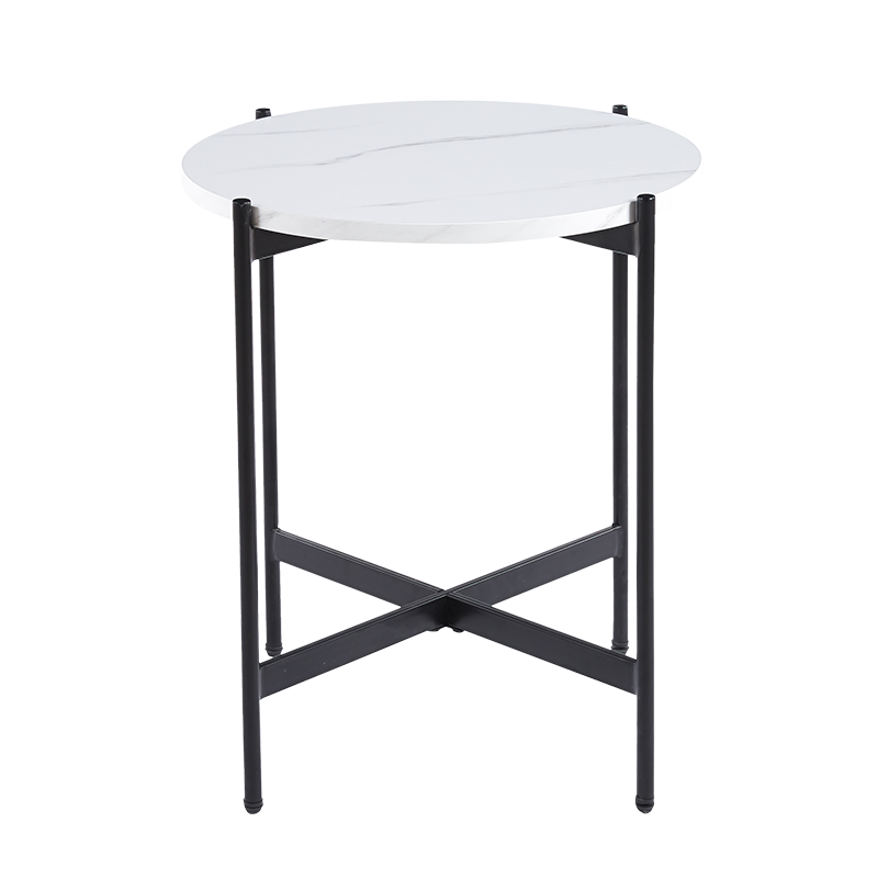 Бляскавият бял плот е съчетан с тънки, изящни крачета, изработени от здрав метал, които придават стабилност и модерна визия на модела. Черният цвят на крачетата създава изтънчен контраст с белия плот, подчертавайки изключителния стил на масата. Тази комбинация от цветове прави продукта подходящ за разнообразни интериорни решения – от скандинавски минимализъм до индустриален шик.