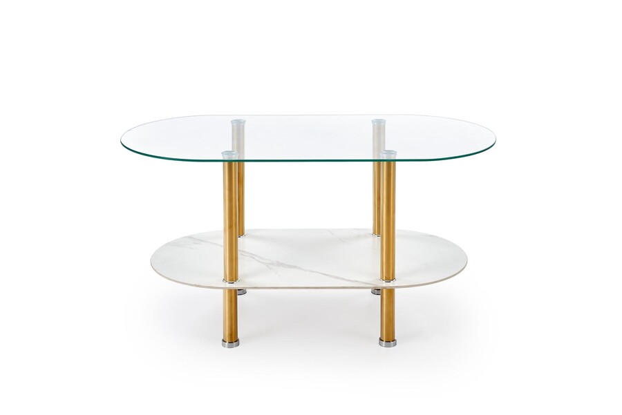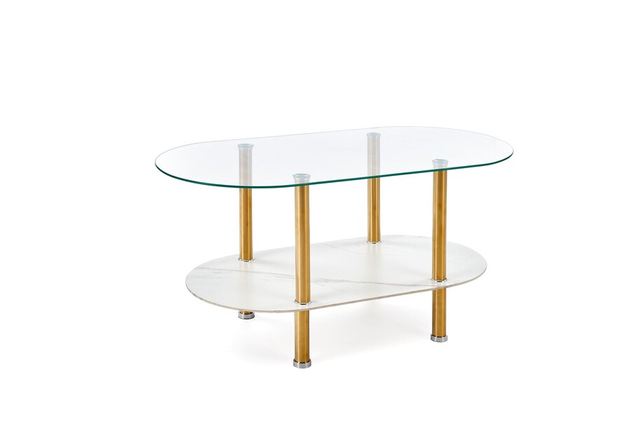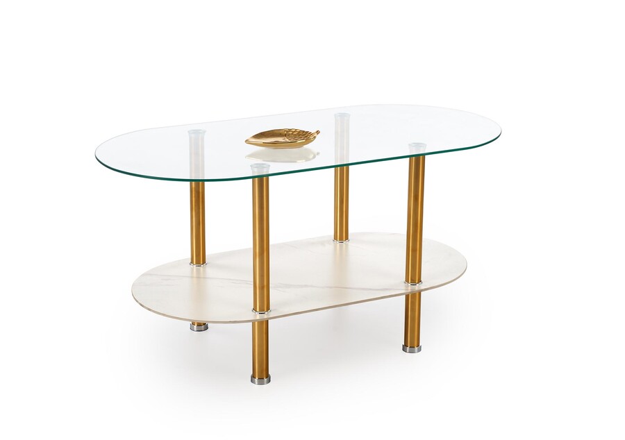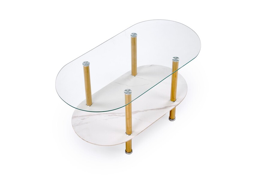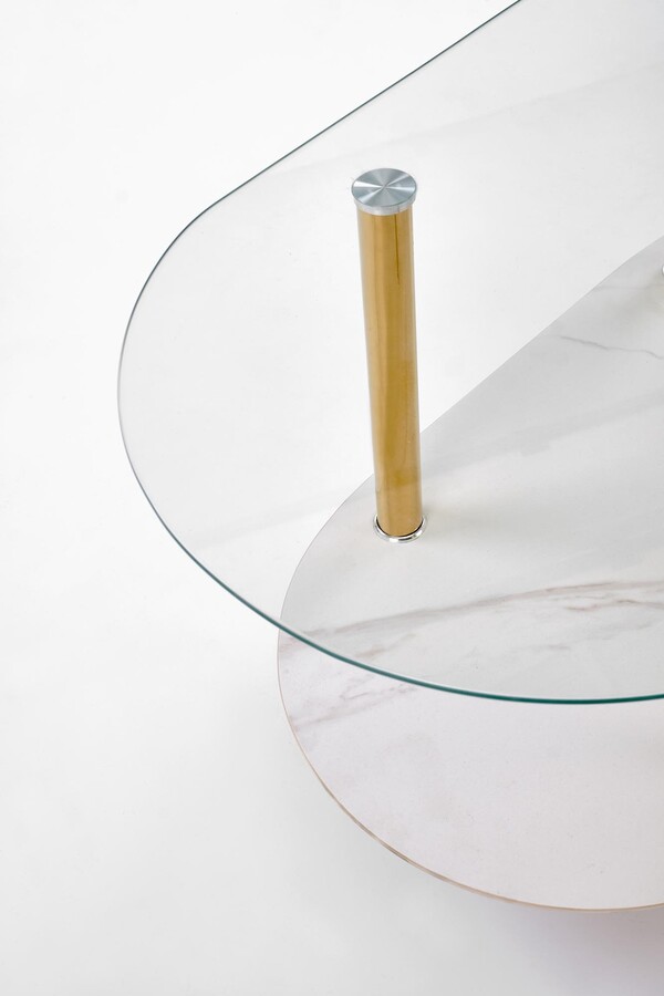 Стъклена масичка за кафе – прозрачна/бял мрамор