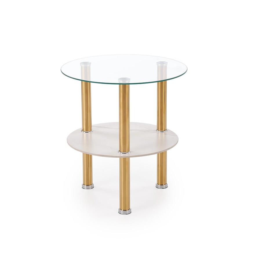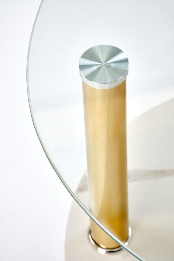 Кръгла масичка за кафе – прозрачна/бял мрамор