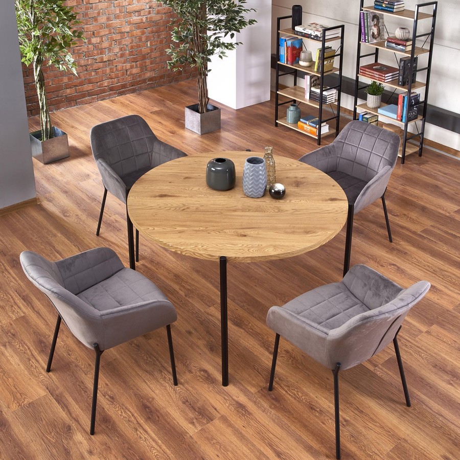 Трапезна маса – Кръглата маса е мебел с проста, но ефективна форма. Поддържан в минималистичен стил, той ще се впише в интериора на таванското помещение и ще бъде добър опит, например за интересни столове. Те благодарение на формата му могат да бъдат зададени на произволен брой, дори странно и тя все пак ще изглежда съгласувано и естетически. В допълнение, системата, в която всеки от хората, седнали до нея, е изправен пред други, насърчава разговорите и прекарва време заедно. Визуалната маса се дължи на четири фини стоманени крака, на които се основава. Не затруднява интериора.