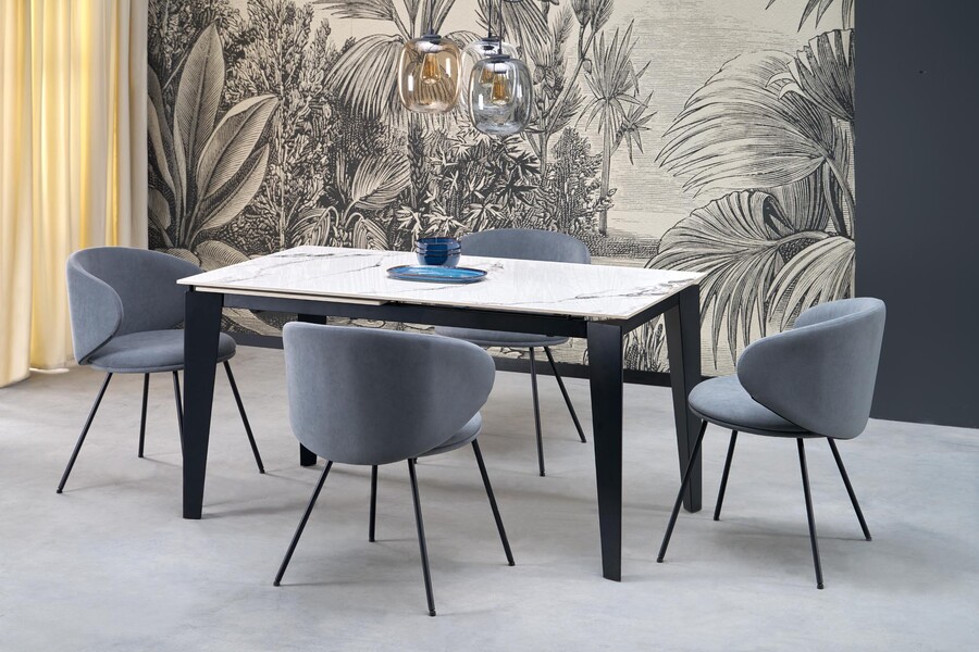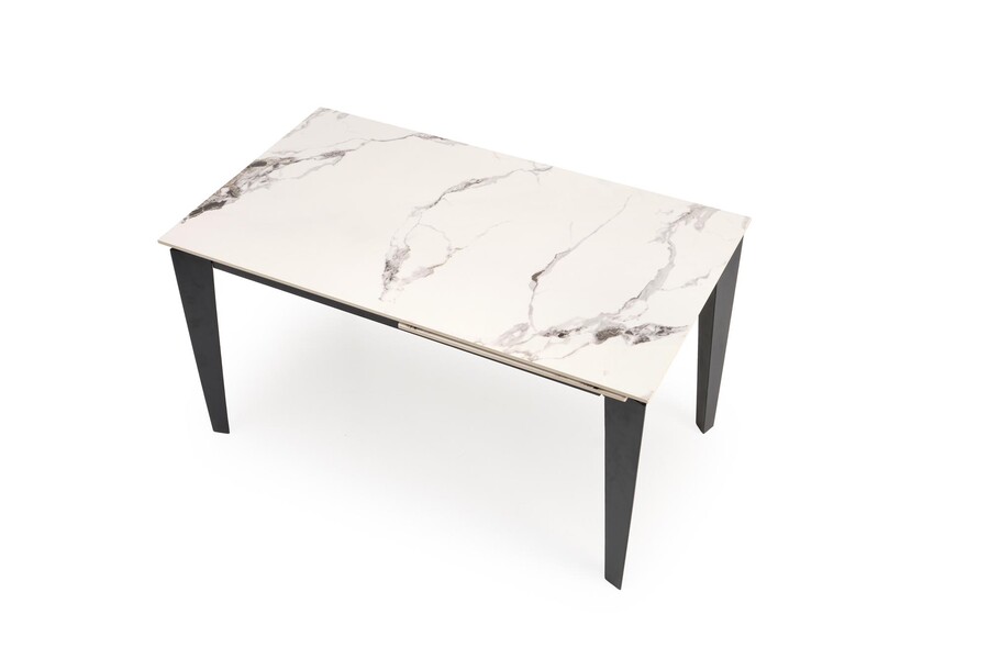 Разтегателна маса 141/201×81 – бял мрамор/черен