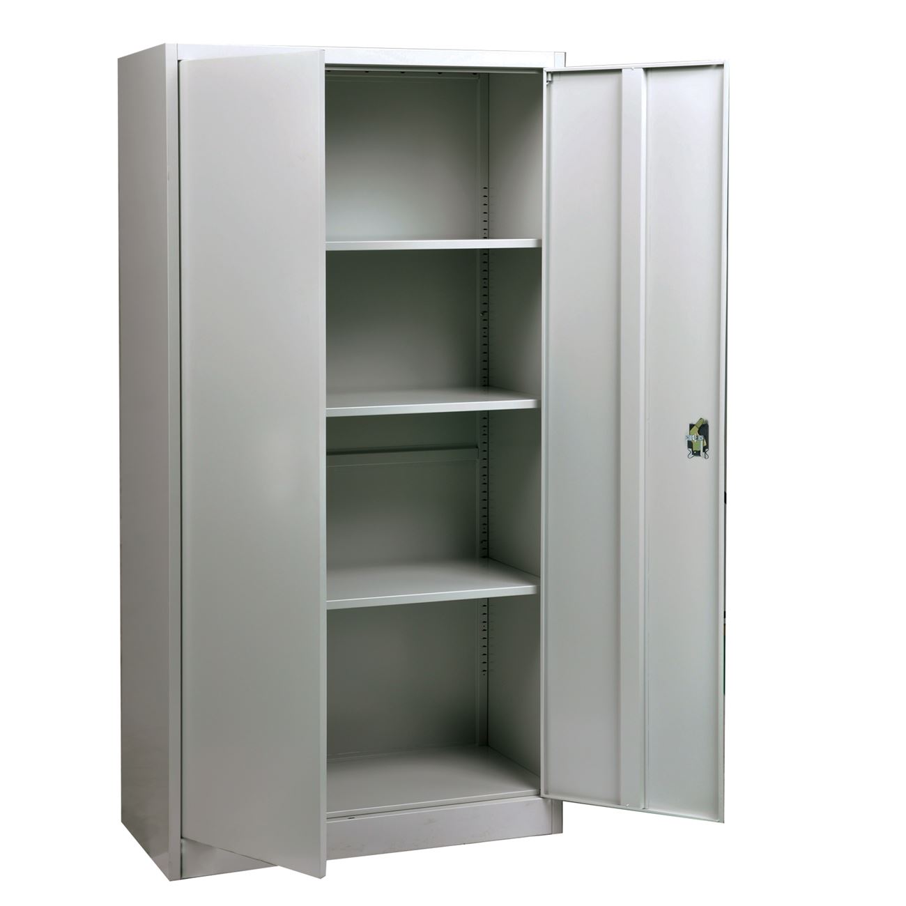 С четири регулируеми рафта, този шкаф за съхранение ви позволява да персонализирате вътрешното пространство според вашите нужди. Можете да съхранявате различни видове материали и предмети, от офиса до работилницата, като постигнете максимална гъвкавост в организацията. Гладката сива боя допринася за професионалния и изчистен вид на шкафа, като същевременно го предпазва от надрасквания и корозия.