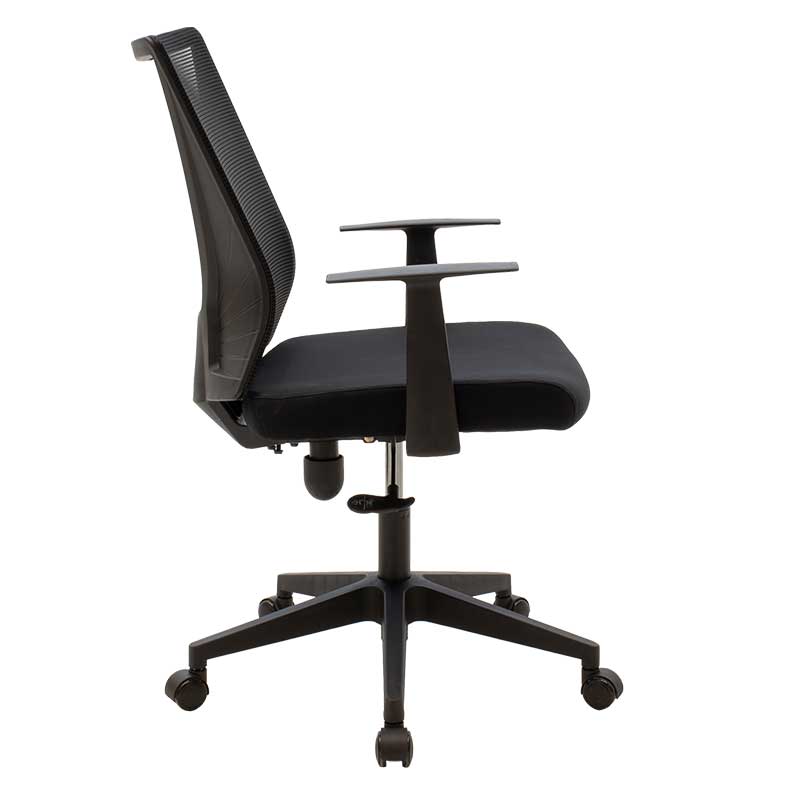 Освен с практичността си, този офис стол впечатлява и с елегантния си външен вид. Специално подбраният материал на седалката и облегалката осигурява комфорт и устойчивост, а мрежестата структура на облегалката позволява добра вентилация, предотвратявайки натрупването на топлина. Колелцата и механизма за въртене допълнително улесняват движението и достъпа до различни части на работното пространство, без необходимост от постоянно ставане.