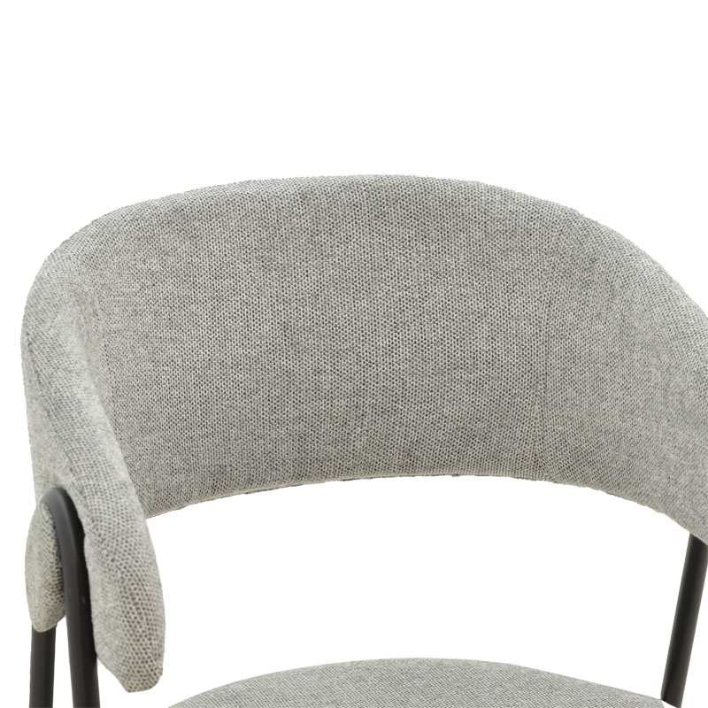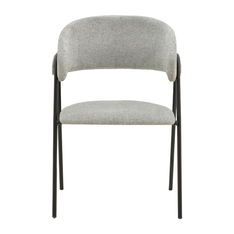 Седалката и облегалката са облечени в мек текстил, който предоставя комфорт, дори при продължително използване. Притежаващ сив оттенък, този стол лесно се вписва в различни интериорни решения, допълвайки както модерни, така и класически декори. Цветът създава усещане за спокойствие и елегантност, което го прави идеален избор за всяка трапезария, офис или дневна.