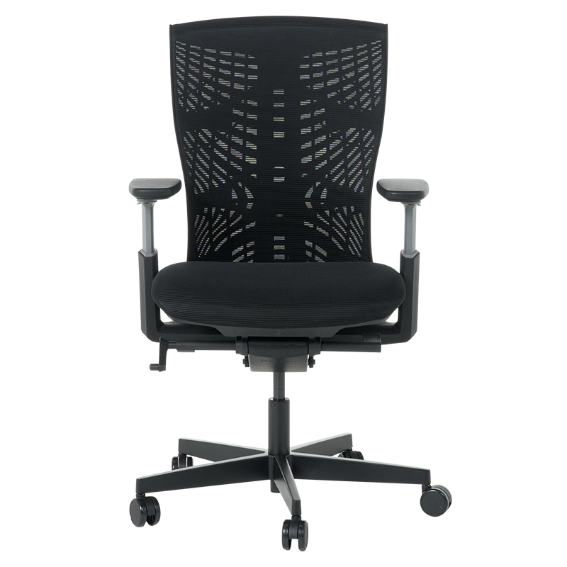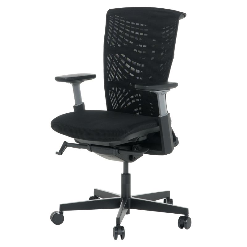 Столът разполага с регулируеми подлакътници, които позволяват идеалната височина и наклон за ръцете, намалявайки напрежението в раменете и шията. Със своето дишаемо мрежесто облегало, столът осигурява оптимална вентилация, предотвратявайки натрупването на влага и топлина, което гарантира свежест и комфорт през целия ден. Седалката е подплатена с висококачествена пяна, която предлага отлична подкрепа и намалява умората.