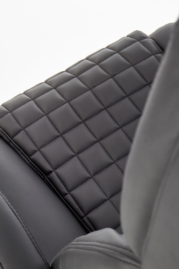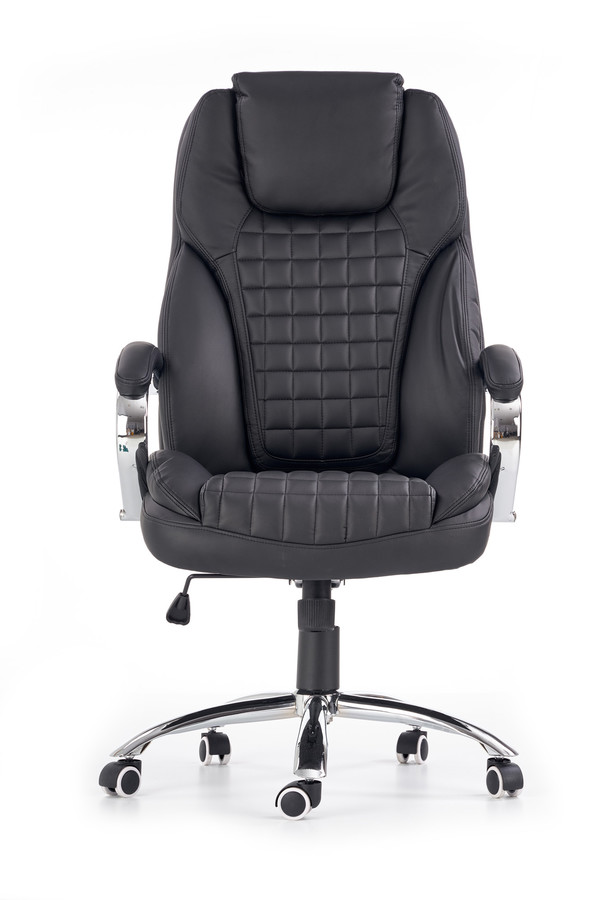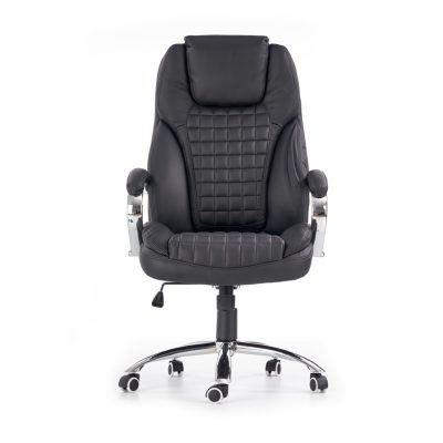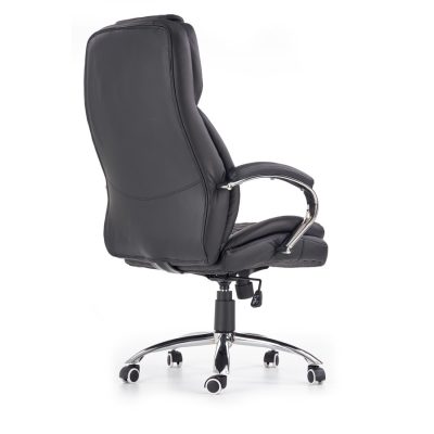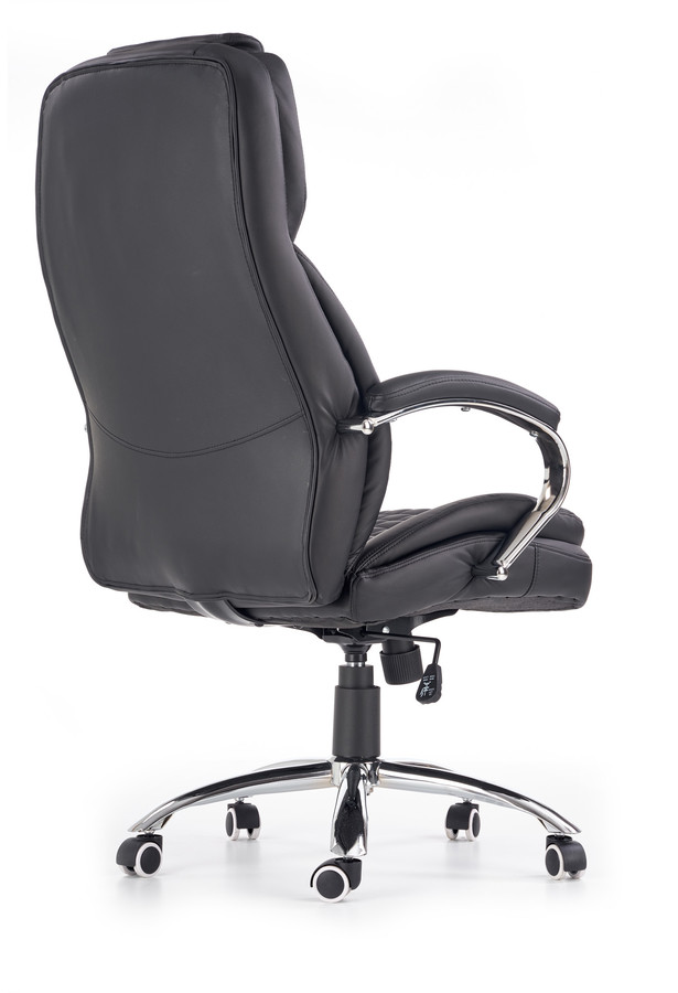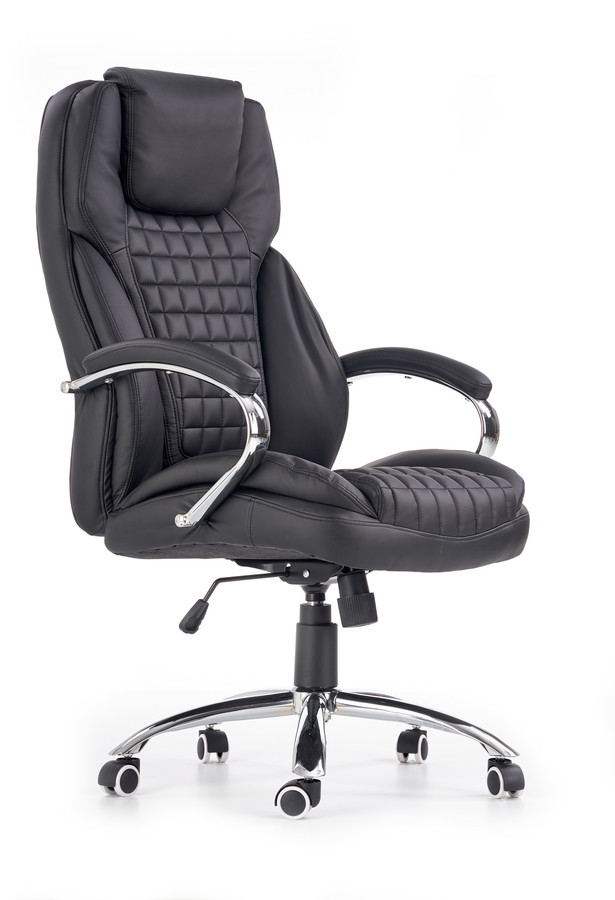 Офис стол – ергономичен мебел, който ще осигури на потребителя адекватен комфорт на работа благодарение на правилната подкрепа на отделните части на тялото. Съвременният фотьойл ще се впише в модерната подредба на офиса на открито пространство, конферентната зала и дори частен офис. Масивният дизайн има вграден механизъм за наклон, благодарение на който можем да регулираме височината на седалката, както и да се люлеем свободно и да блокираме облегалката в правилната позиция за работа. Моделът е оборудван с шофьорски колела, които са адаптирани да се движат по твърди повърхности и килими. Твърдото с тапицирани подлакътници и отделно табло е направено от черна екологична кожа, която е известна с повишена устойчивост на мръсотия и механични щети. Стилното шевово и подчертаване са видими както на тапицерията, така и на седалката, която ще привлече окото на всеки потребител. Елегантният и силно функционален дизайн ще въведе някаква модерна елегантност в избраната стая.