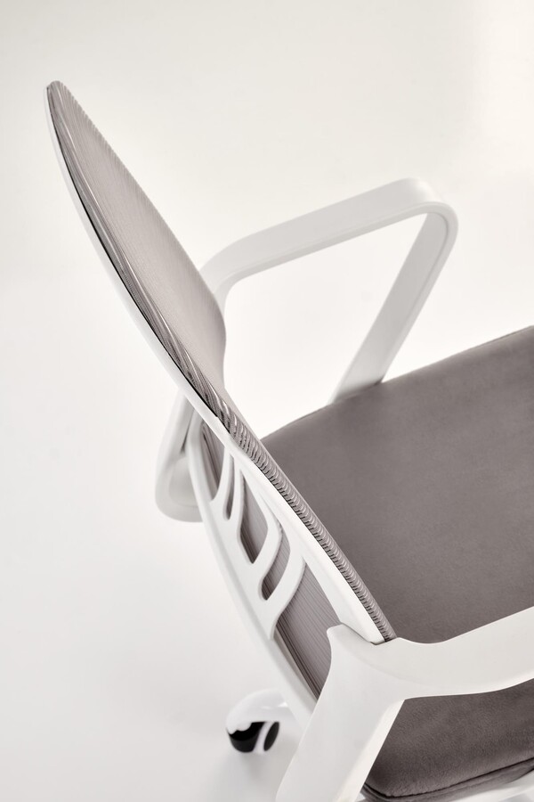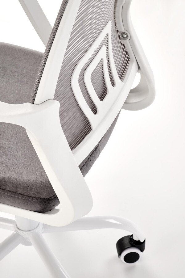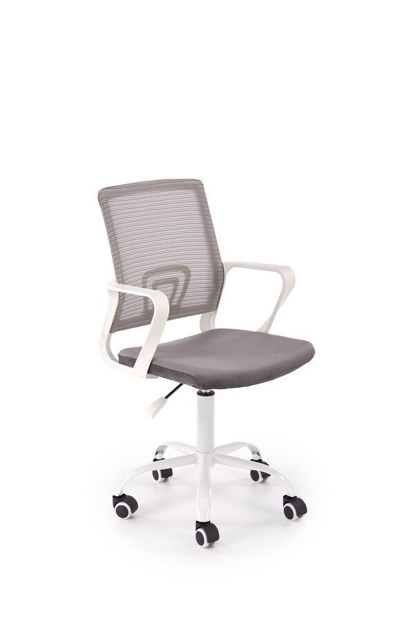 Размери: ширина: 50 см – дълбочина: 51 см – височина: 88 – 100 см – височина на седалката: 47 – 59 см Максимално натоварване: 100 кг Материал: – кадифена материя – метал – пластмасови колела Цвят: светъл пепел Допълнителна информация: – основен механизъм – нерегулируеми подлакътници
