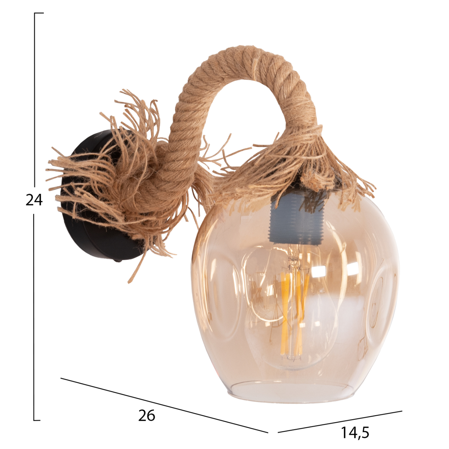 Тази уникална лампа е съвършено съчетание между съвременен стил и натурална естетика. Изработена от висококачествени материали, тя добавя топлина и уют на всяко помещение. Съчетанието от прозрачна стъклена основа и естествена въжена декорация придава изключителен характер на интериора.