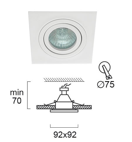 Осветително тяло да вграждане, Бял квадрат 92X92 Richard