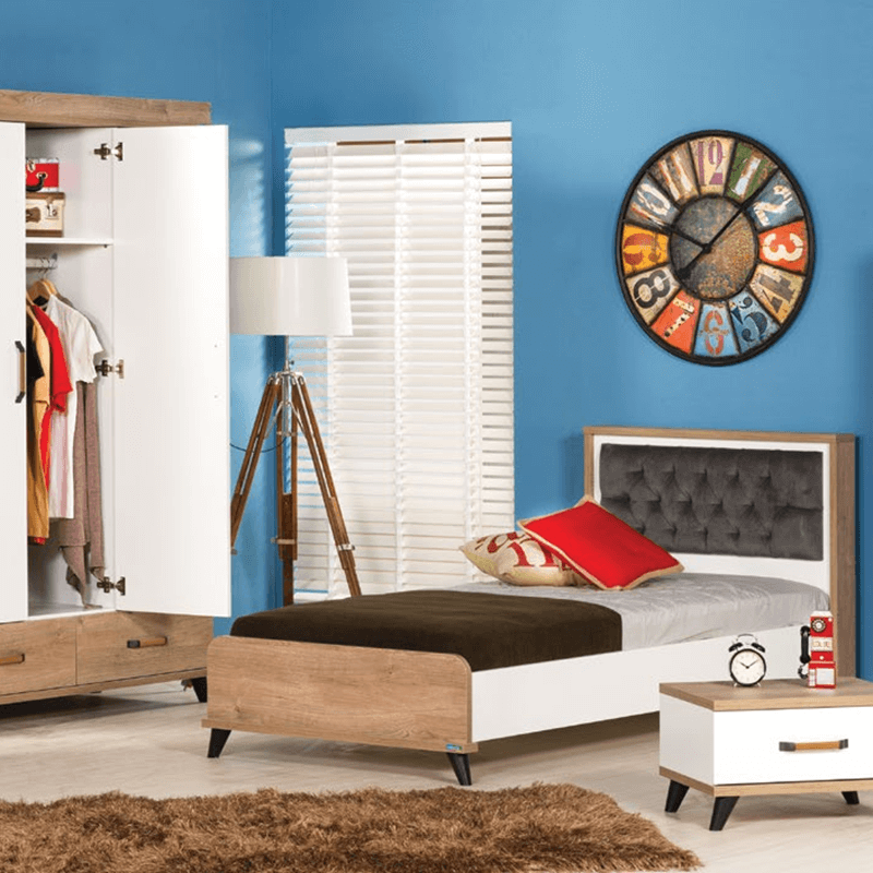 Детското легло с размери 120 x 200 см е голямо и удобно решение, което носи модерен акцент със своя стилен дизайна, вдъхновен от природата. Със здрава конструкция, то предлага дълготраен комфорт, а висококачествените материали, използвани за изработката, включват ПДЧ с дебелина 18мм и 25мм. Леглото разполага с 9 см високи крачета, които гарантират стабилност и дълготрайност. Перфектно е за растящи деца, осигурявайки им удобство и достатъчно пространство за игра и отдих. Пълна информация за размерите и характеристиките на модела можете да намерите в таблицата в раздела „Техническа информация“.