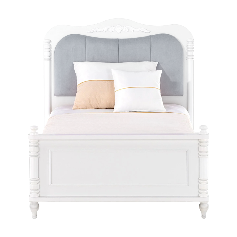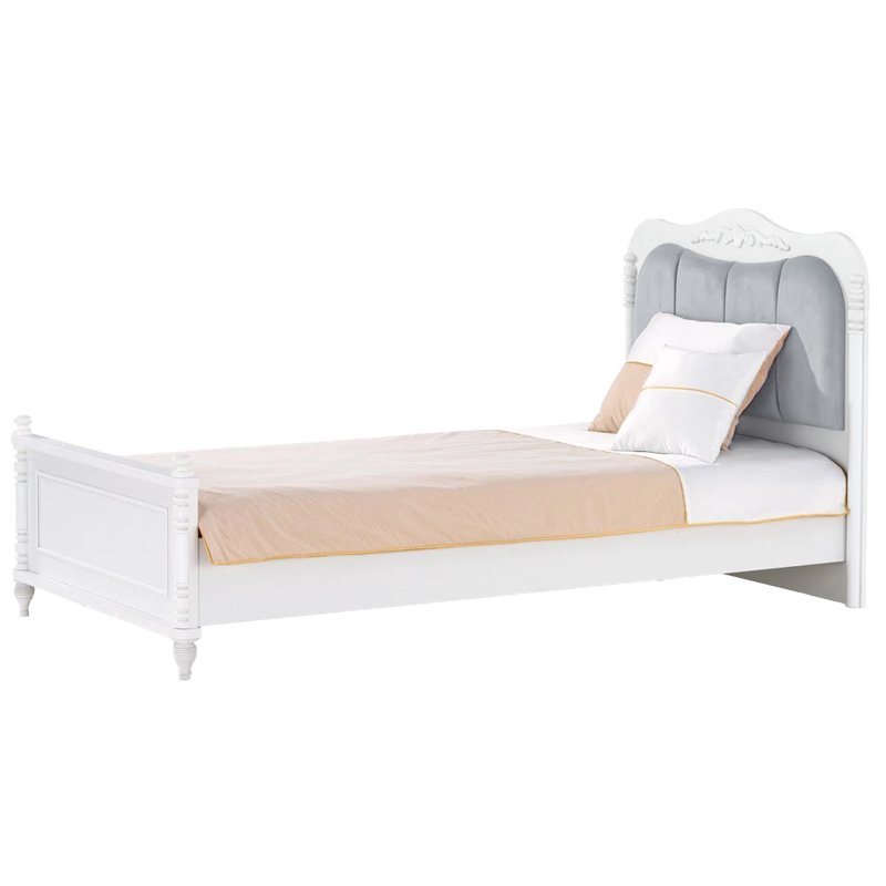Детско легло 100 x 200 превръща детската стая в дворец за принцове и принцеси, благодарение на класическите си детайли, изработени от МДФ и 18 мм ПДЧ. Цветовата гама от бяло и сиво добавя усещане за уют. Пълна информация за размерите и характеристиките ще намерите в таблицата в таб/поле „Техническа информация“.