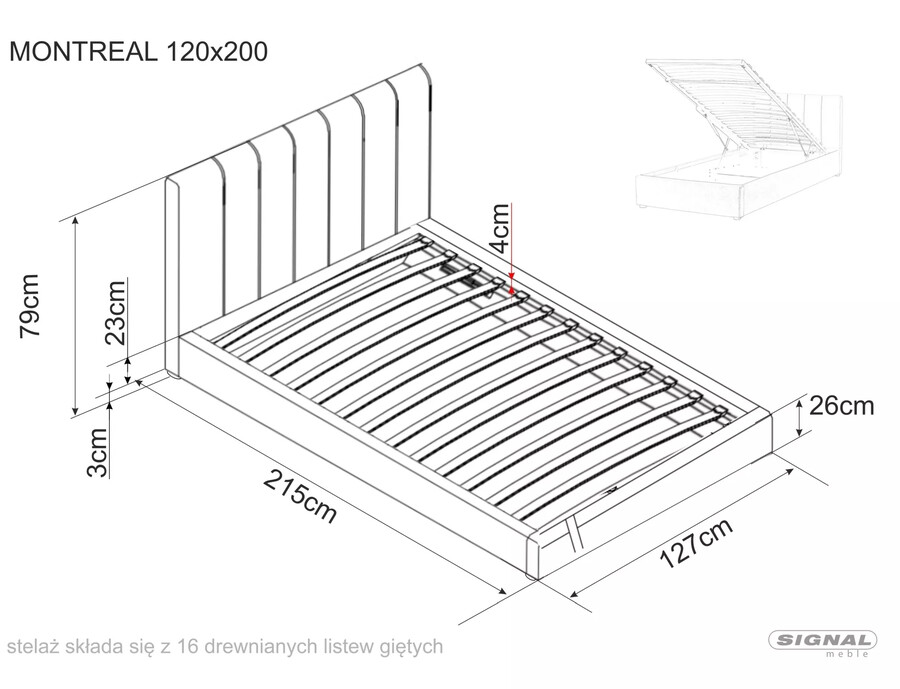 Легло 120×200 с място за съхранение – сиво Размери: дължина: 215 см – ширина: 127 см – височина: 79 см – дълбочина на матрака: 4 см – размери на матрака: 120×200 см Материал: кадифена тапицерия 192 Цвят: сив Допълнителна информация: – тегло: 36 кг – максимално натоварване: 120 кг – комплектът включва рамка от огънати летви, монтирани в гъвкави държачи – газови бутилки – цената не включва матрак