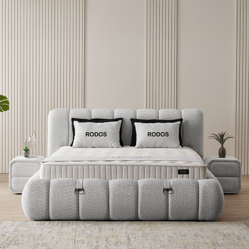 е смело дизайнерско изявление – впечатлява с меки, обемни форми и хармонична тапицерия от висококачествена дамаска. матрак гарантира пълен комфорт, а скулптурният ѝ силует превръща спалнята в елегантно и модерно пространство за релакс. е създадена за ценители на интериори с характер и неповторим стил. информация за размерите и характеристиките на модела ще намерите в таблицата в таб/поле информация’.