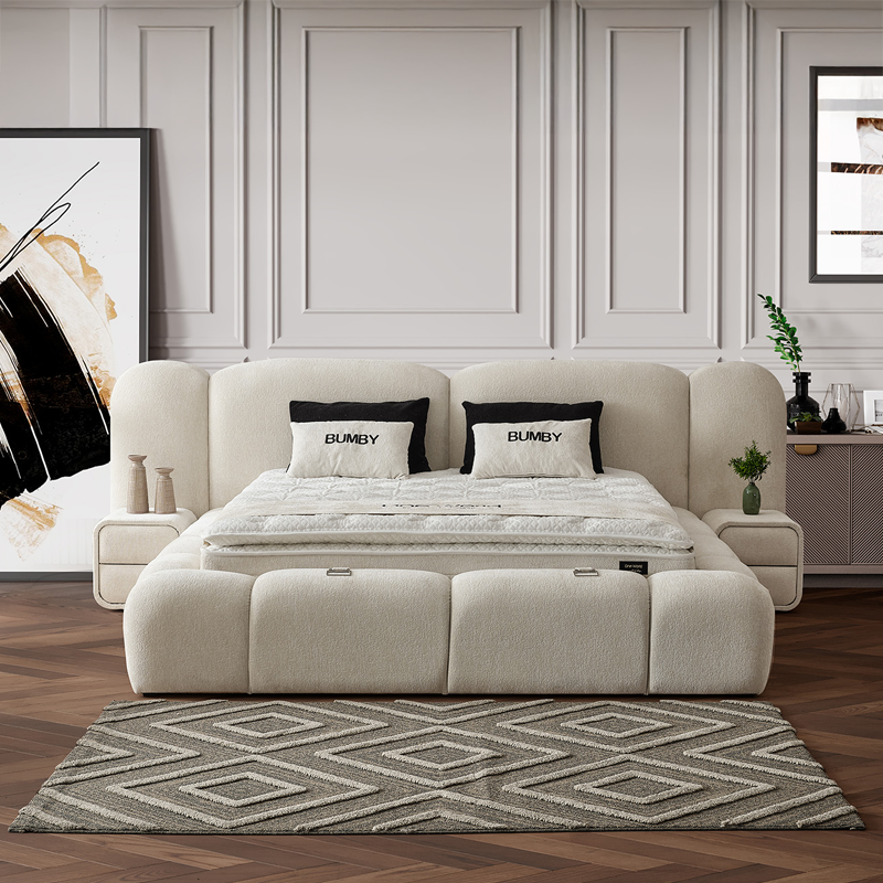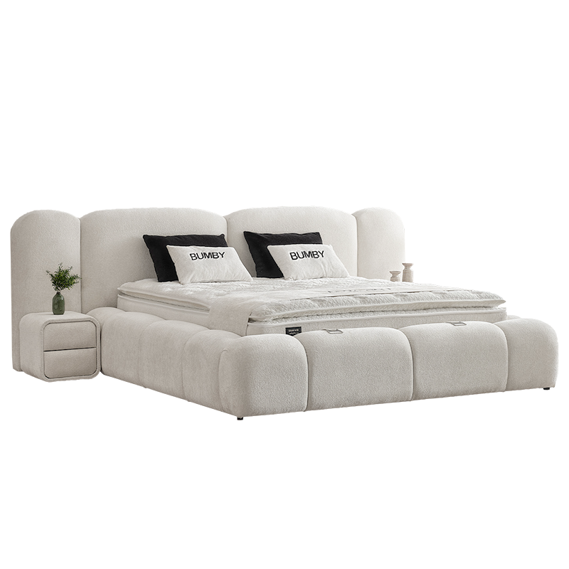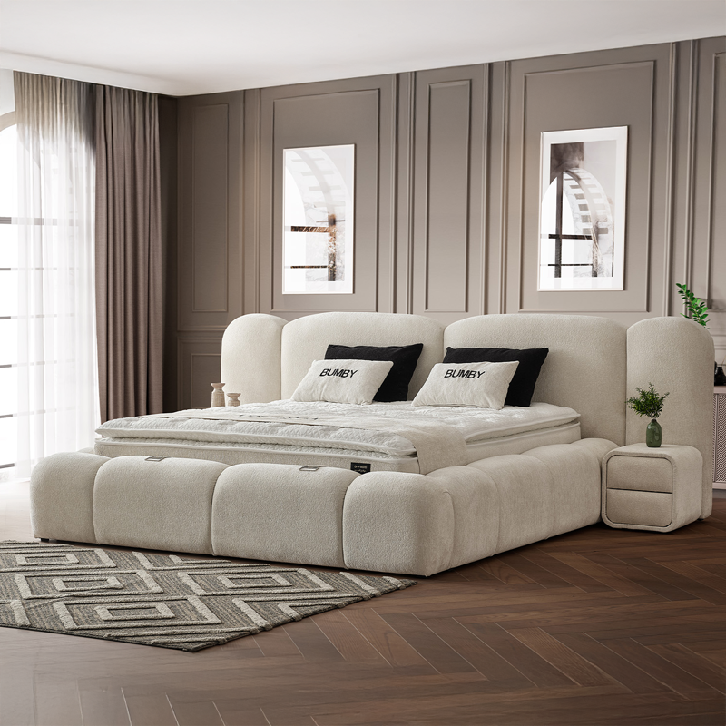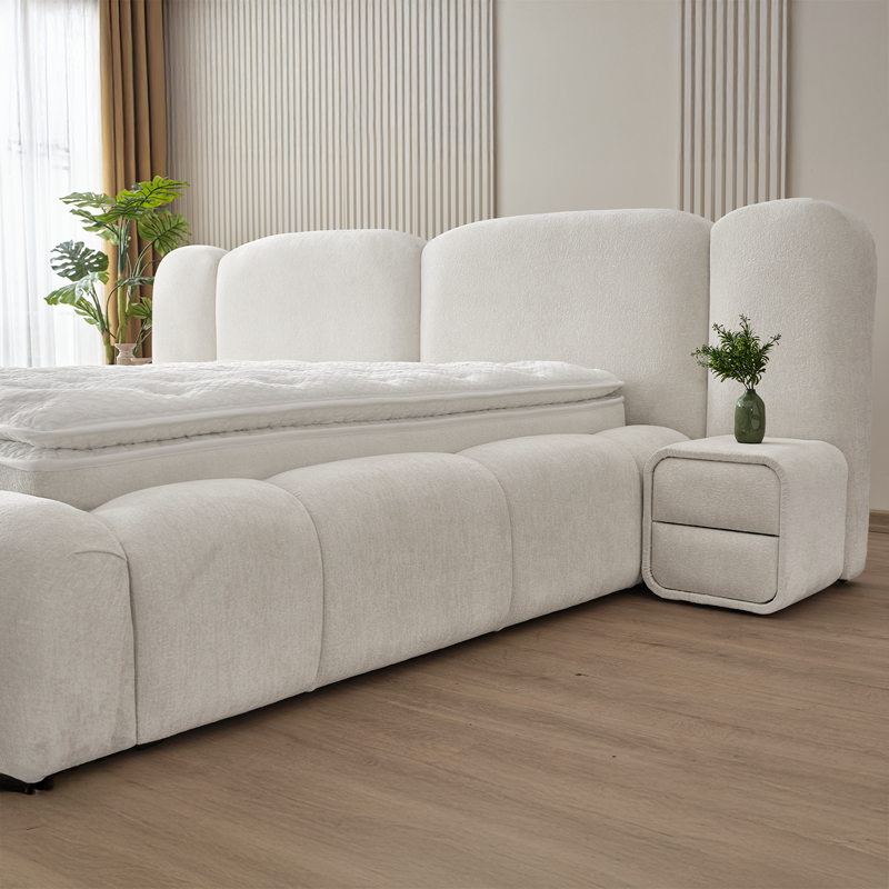 е въплъщение на модерния лукс – изваяна в силует, напомнящ облак, с меки обгръщащи бордове и изискана тапицерия от висококачествена дамаска. не само с естетика, но и с функционалност – включен е умерено мек матрак, подматрачна рамка с амортисьори и практична ракла за съхранение. комфорт и изтънчен дизайн, превръщайки всяка спалня в пространство за релакс и вдъхновение. се допълва с нощното шкафче от серията. информация за размерите и характеристиките на модела ще намерите в таблицата в таб/поле информация’.
