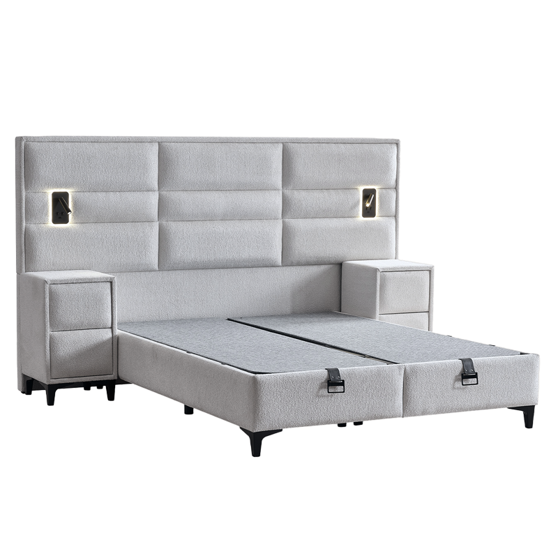 е съчетание от елегантност, комфорт и съвременни детайли. във висококачествена дамаска, тя идва с включен матрак, който осигурява пълноценен сън и максимално удобство. LED осветление в таблата не е просто практичен акцент, а създава неповторима атмосфера – мека светлина за уют и модерна визия във всяка спалня. аксесоар към модела се предлага нощно шкафче, което добавя завършеност и подчертава изискания характер на серията. информация за размерите и характеристиките на модела ще намерите в таблицата в таб/поле информация’.