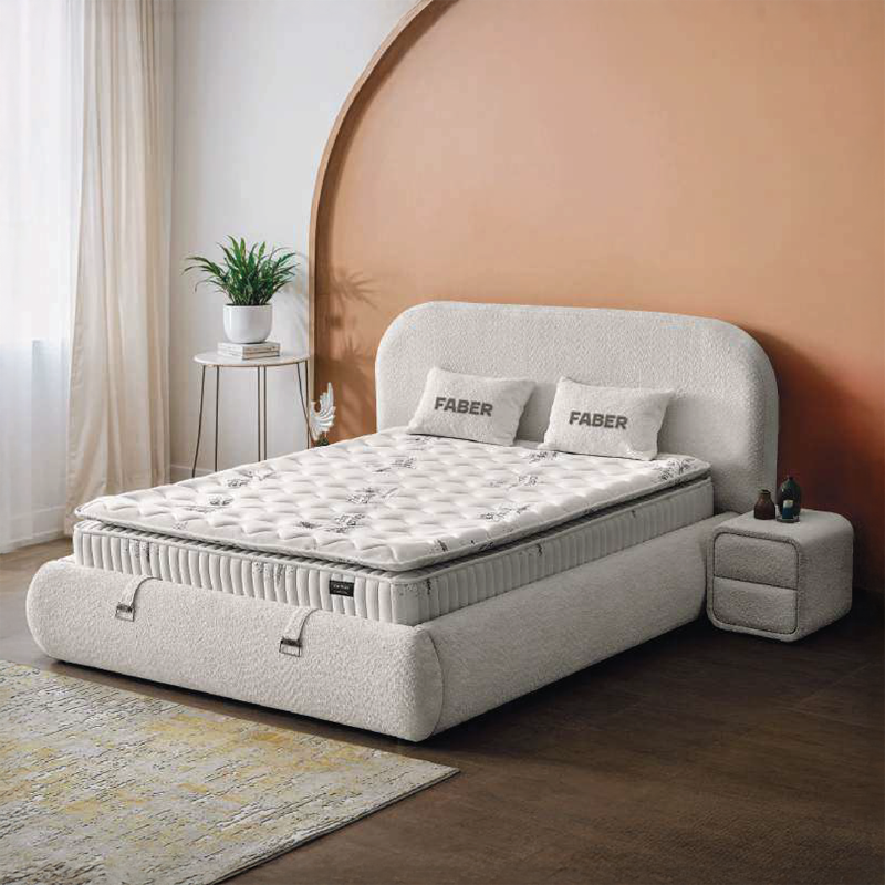 Тапицираната спалня с матрак съчетава модерна естетика с ергономичен комфорт предлагайки изживяване при сън което няма аналог. Изработена от висококачествени материали тя гарантира максимално удобство и дълготрайност а стилният ѝ дизайн придава изисканост и уют на всяка спалня. Включеният матрак е умерено мек осигуряващ балансирана опора и комфорт през цялата нощ. Моделът разполага с подсилена подматрачна рамка с амортисьори и ракла за съхранение – идеално решение за спално бельо и багаж. Пълна информация за размерите и характеристиките на модела ще намерите в таблицата в таб/поле „Техническа информация“